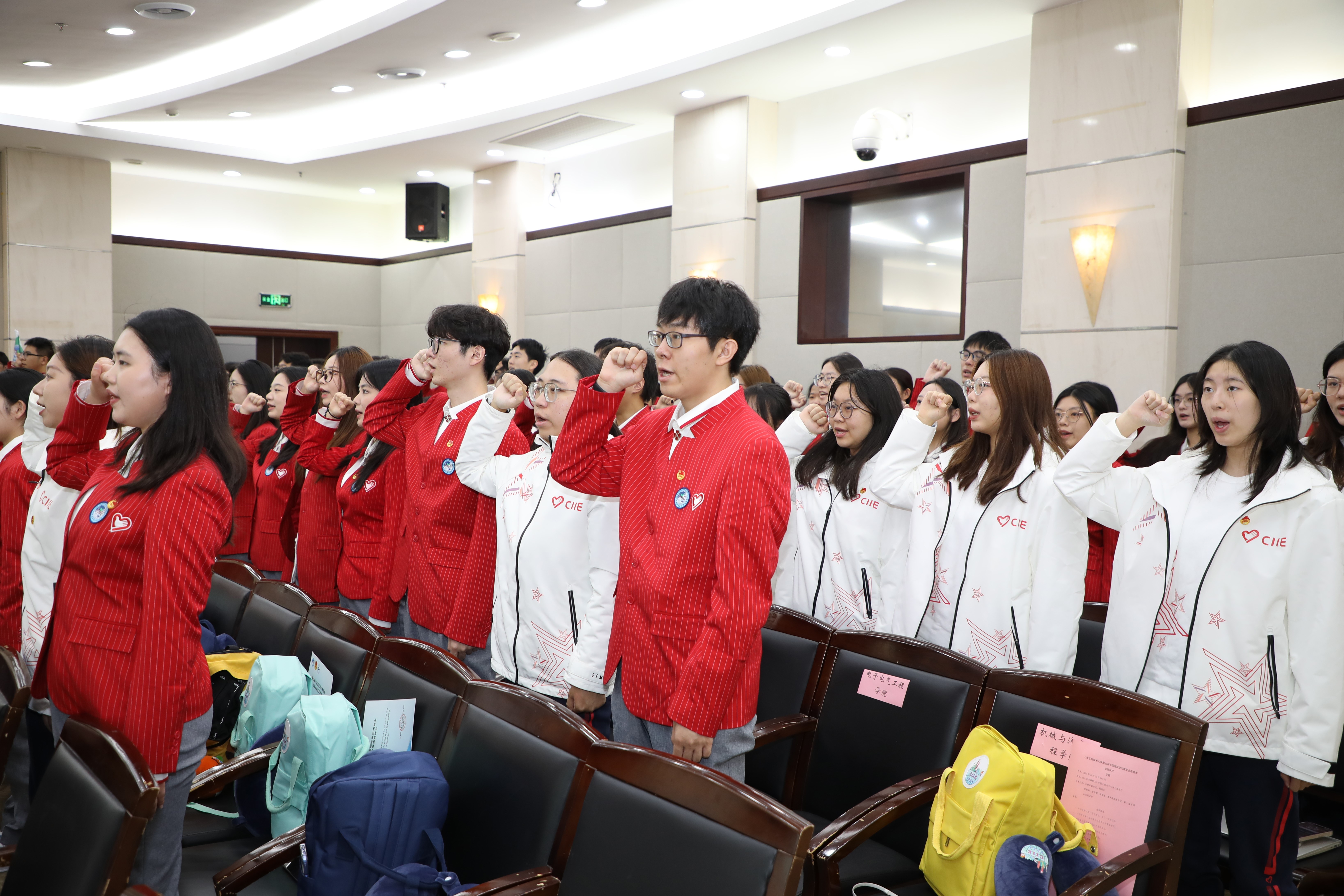 会上,大家通过视频回顾了往届进博会志愿者的青春故事,并庄严宣誓,彰显了程园青年的坚定与赤诚。