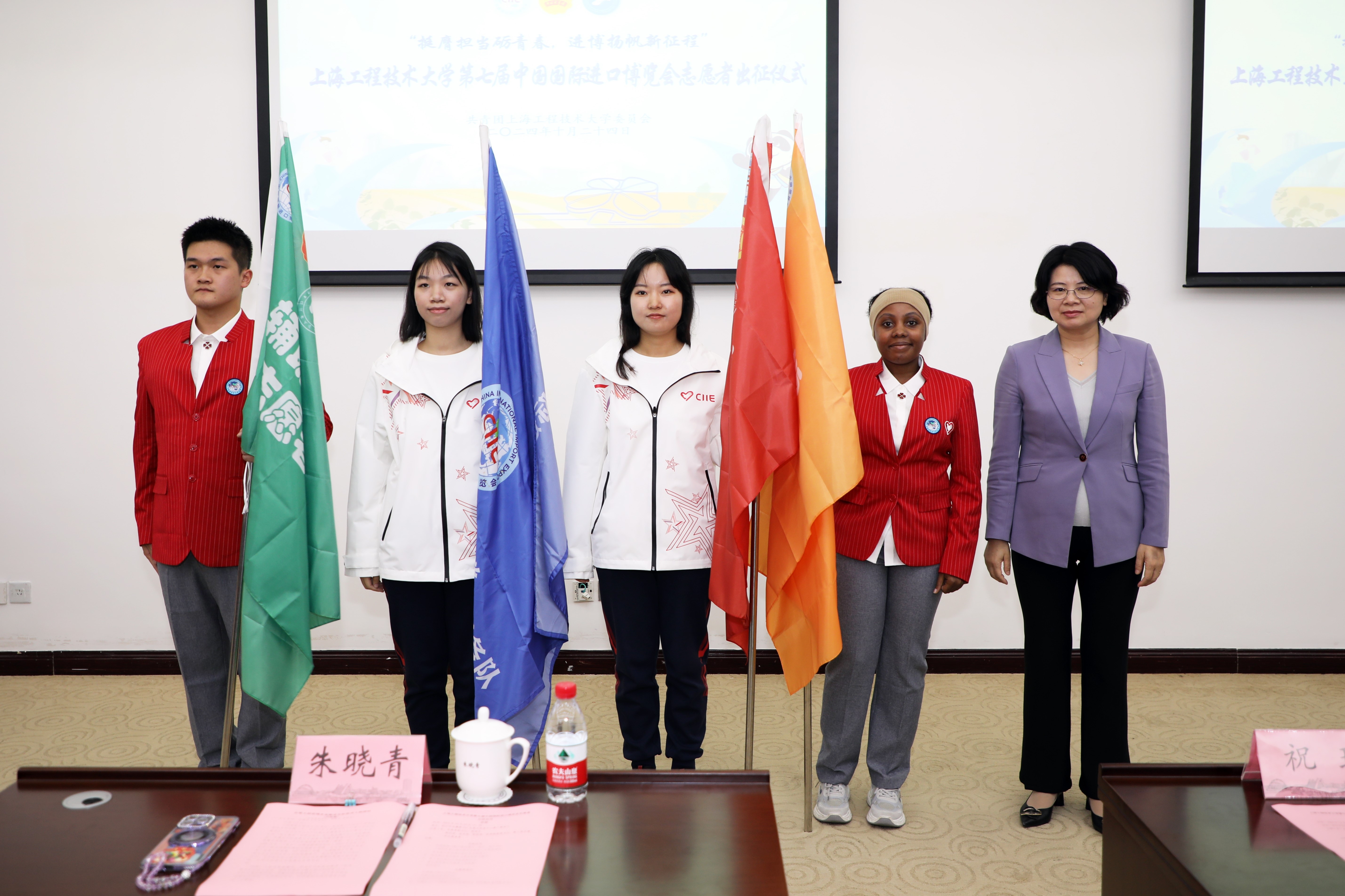 朱晓青为第七届进博会志愿者代表授旗,并对全体志愿者们提出三点期望:一是要提高政治站位,努力成长为国家对外开放的服务者和奉献者。在志愿工作中着眼大局,助力推动建设开放型世界经济,推动构建人类命运共同体。二是要加强学习交流,塑造有理想、敢担当、能吃苦、肯奋斗的中国青年形象。加强政治理论学习、组织跨校联建交流、开展实践体验与微党课,在中国式现代化征程中挺膺担当。三是要勇于担当作为,充分发挥党团员的先锋模范和突击队作用。发挥优秀志愿者榜样示范效应,强化朋辈教育,引导大学生见贤思齐。
