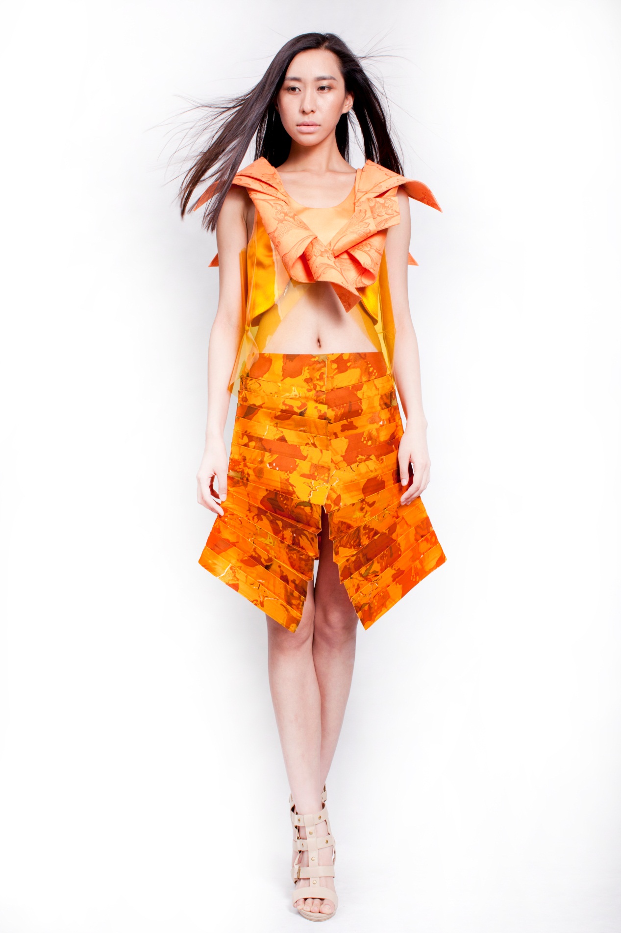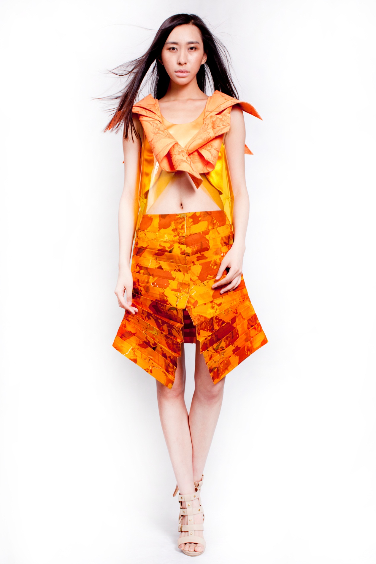 许威宁以秋天为主题的作品设计则是以黄色作为底色,裙摆层层叠叠的褶皱处理给人印象深刻。据他介绍,现在正值秋季,落叶归根,返璞归真,是大自然告诉我们的最自然的道理,用秋天这个概念,也是希望人们看到作品后便能联想到大自然,拉近和大自然之间的距离。新西兰师生的服装作品与中方的学生不同,他们在设计时更注重面料的环保和色彩的大胆使用。学生Rakel Johannsd Blomsterberg表示,在面料选择方面,他们更愿意采用天然羊毛和棉料,不进行再加工和再处理。另外新西兰是个传统畜牧业大国,花卉、植物是生活中的重要组成部分。因此,在服装的设计和图案搭配上也富有创意,新西兰耳熟能详的人物、动物图案都能成为设计师手下的宝贝,将服装和大自然结合地很好,生机勃勃。