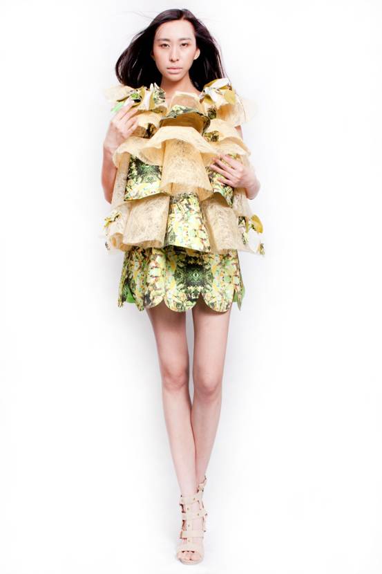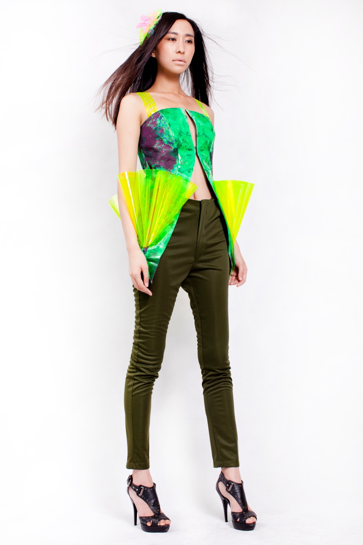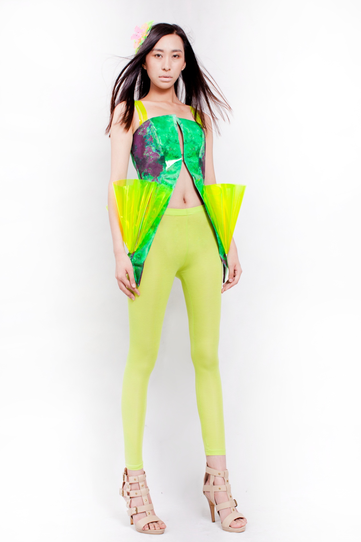 GREEN,绿色,它可以丰富到五彩斑斓,也可以单纯到一抹翠色;它可以大到生机勃勃的自然,也可以小到一片苍翠欲滴的树叶;它可以关系到地球的可持续发展,也可以简单到日常生活的环保行动。 21世纪无疑是绿色的世纪。上海工程技术大学中法埃菲时装设计师学院的学生黄陆闽泓、陈曦、周是杨、郭蕊、吕晨曦、许威宁分别带来了以海洋、星空、树叶、蝴蝶、水、秋天为元素的服装作品。据大四学生黄陆闽泓介绍,现在全球气候变暖,四季开始不分明,也直接限制了服饰的多样性,所以她和同学们都希望用"green"这个主题的服装,倡导重复利用,保护环境,保护地球。
