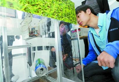 易拉罐、牙膏皮、灯泡、电池……对于很多有心践行绿色生活的人来说,准确地对各式各样的垃圾进行分类,是一件颇有“技术含量”的事。不过,由上海工程技术大学机械学院大学生自主设计的一款“自动分类垃圾桶”,能让垃圾乖乖地“各就各位”。今天上午,记者在位于松江的上海工程技术大学工程实训中心对这款智能垃圾桶一睹为快。 垃圾分类难推行,触发设计灵感 记者在现场看到,一名学生依次将易拉罐、玻璃药瓶、塑料瓶、废纸扔进这款“自动分类垃圾桶”,垃圾桶内置的分离装置能对垃圾进行识别,并把垃圾分门别类地传递至不同区域。 “自动分类垃圾桶”的项目负责人、上海工程技术大学机械学院机械工程及自动化专业学生赵振峰表示,“本市倡导垃圾分类已有数年,但有的市民要么不知道怎么区分垃圾、要么缺乏垃圾分类意识,干脆随手一扔,如果有一款能自动分类的垃圾桶,那么市民就不必为垃圾该进哪个垃圾桶而犯愁了。 ” 自动分类垃圾桶,识别率达90% 把图纸变成实物并不是一件容易的事。赵振峰说,仅结构设计就尝试多次,电路板、控制器更是不停地被修改直至最佳状态。电机选择、电机静力矩与带动负载之间的关系、电机启动的力矩衰减……工程设计要解决的问题真不少,尤其项目组成员们启动这项设计时才刚升入大二,由于大一专业课接触有限,他们屡屡碰壁。 “很多东西不是看书就能懂的,需要实验。 ”于是,查资料、看教程、不停地尝试,赵振峰和伙伴们就这样边实验边自学,不懂就去找老师,找学长帮忙。如今,这款“自动分类垃圾桶”的识别准确率能达到90%。 “实验室有几张凉席,实验做累了就去躺一会儿,醒了继续做。哪里不完美,我们就改到完美! ”回忆起今年5月中旬的“攻关期”,龙刚感慨道,“做项目总是精神百倍,等乏了、困了才注意到已经凌晨四五点了。 ”为了能加快进度,成员们一致同意采取轮休制,确保工作台前始终有人。 智能垃圾桶实现能源再次利用 有意思的是,自从一起设计制作“自动分类垃圾桶”,组员们经常互相玩笑说,“在我们的垃圾桶没有问世前,请注意分类! ”他们根据不同垃圾的材质,就其不同的介电常数进行分类,而垃圾桶在室外采用太阳能电池板供电。大学生设计者们表示,如此一来,环保型自动分类垃圾桶既能节约能源、减少排放,又实现了能源回收再利用的目的。 为了节省“自动分类垃圾桶”的加工成本,大学生们不断对其进行结构优化,使制作成本足足降低了30%。龙刚说,“垃圾分类重在节能环保,所以只有降低了成本才有被欣赏的价值。 ”该项目指导教师张春燕表示,大学生的创新项目重在可行性,而不是“纸上谈兵”。虽然这款“环保型自动分类垃圾桶”已在上海市机械设计创新大赛中崭露头角,但在张春燕看来,它在被推广前,还需要克服环境因素对自动识别检测准确度的影响,并尽可能地贴合人们日常使用的习惯。大学生设计者们表示,将继续“攻关”,进一步完善“自动分类垃圾桶”的各项功能。 原文链接: http://newspaper.jfdaily.com/xwwb/html/2012-11/13/content_918359.htm 转载链接: 中国低碳网:http://www.ditan360.com/TanHui/Info-118403.html 新华网: http://news.xinhuanet.com/environment/2012-11/13/c_123949046.htm 中国日报: http://www.chinadaily.com.cn/hqpl/zggc/2012-11-13/content_7497304.html 中国网: http://news.china.com.cn/live/2012-11/13/content_17134363.htm 新民网:http://news.xinmin.cn/shehui/2012/11/13/17158677.html 和讯网:http://news.hexun.com/2012-11-13/147901058.html 东方网:http://sh.eastday.com/m/node682932/u1a6991712.html