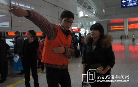 春节前的最后一周开始的第一天,上海铁路如期迎来了第一波12万客流的小高峰。上海工程技术大学的志愿者们——小甜橙带着“程心”“橙意”的服务宗旨,来到铁路虹桥站为返乡旅客服务。 上海工程技术大学小甜橙负责人金祎臻说:“继去年上海工程技术大学在铁路上海站出色完成春运服务任务后,今年主动挑起重担,参与铁路上海站和铁路虹桥站的服务工作。尤其是铁路虹桥站,虹桥站建成不久,集航运、火车、公交枢纽为一体,相较其他两站,出入口更复杂,吞吐旅客流量更多,这些无疑对于志愿者来说是一项新的巨大挑战。” 金祎臻还说,小甜橙们每天9小时服务于铁路虹桥站,人均每天要承担约2000人次的服务量, “程”心“橙”意,工程大“小甜橙”一如既往的用热情微笑、周到服务温暖每一个回乡的旅客。 有异乡人的感同身受,也有东道主的自豪骄傲 上海工程技术大学大一学生武铮,小学二年级时随父母从东北来到上海定居。现在的他虽然成为了一名新上海人,但还是保留着回乡过年的习俗。“刚来上海的时候特别想家,父亲为了保住来之不易的工作坚持不请假,所以都回买临近过年的车票,但这样的票着实难买,父母还为此争执过,还是在朋友的帮助下才够得了车票。在铁路虹桥站服务的这几天,我也切身感觉到了很多异乡人对于购票的急切心情。” 武铮服务的这几天,不仅耐心、仔细地帮助每一位旅客,还一直不断翻看着铁路沿线的各个站点,为的就是能为旅客买票的时候提供更好的方案,没有了直达的车次,“曲线”回家倒也不失为另一个办法。 问起武铮为何不早早跟随父母回家乡,而坚持留在上海参与志愿服务工作,直至春运的最后一周。他说:“父亲从来上海至今已经十年了,都在上海站好最后一班岗才回家过年,没有一次拉下,现在我是一名90后大学生了,我也要向父亲一样,作为新上海人,为上海站好最后一班岗。” 第一次为聋哑人服务,感动他人更感动自己 上海工程技术大学的小甜橙们奋战在购票的岗位上,平均一位志愿者1分钟就要服务4-5位旅客购买车票,一天下来数万名旅客就将得到小甜橙的服务。 小甜橙戚燕琴近日就碰上了一位特殊旅客——聋哑人。当聋哑人女孩拍了拍女孩的肩膀,指了指自己的嘴巴,挥了挥手,又指了自己的耳朵,挥了挥手,小戚同学便感觉到了这位旅客与以往不同。她指了指购票机器,女孩点头,递过去了一张打印着网络购票的订单。小戚核对了信息,并为女孩的身份证顺利为女孩拿取了火车票。 这是小戚第一次参与在火车站服务春运的工作,在她回忆起来“能帮助别人,超满足的!”那天她帮助了聋哑女孩,不只是给了女孩感动,也给了她自己感动。 年年生日都在候车厅过,简单却更显意义非凡 小甜橙丁一是个志愿者达人,今年已经是他第三年在春运志愿者服务的第一线过生日了,集体唱生日歌、吹蜡烛、切蛋糕,前后不过10分钟的时间,但是对于丁一来说却是意义非凡,“每次参加小甜橙的服务工作,帮助他人,温暖自豪的情感就越发深刻。今年生日那天,还有外国旅客驻足为他提供的帮助表示感谢,并送上了生日祝福。” 这是他第二次在候车厅过生日了,回忆起来,生日简单更显意义。父母也非常理解他,帮助别人的那份精神远比在家过一次生日来的更加意义非凡。 原文链接: http://www.shedunews.com/zixun/shanghai/gaodeng/2013/02/04/485360.html |