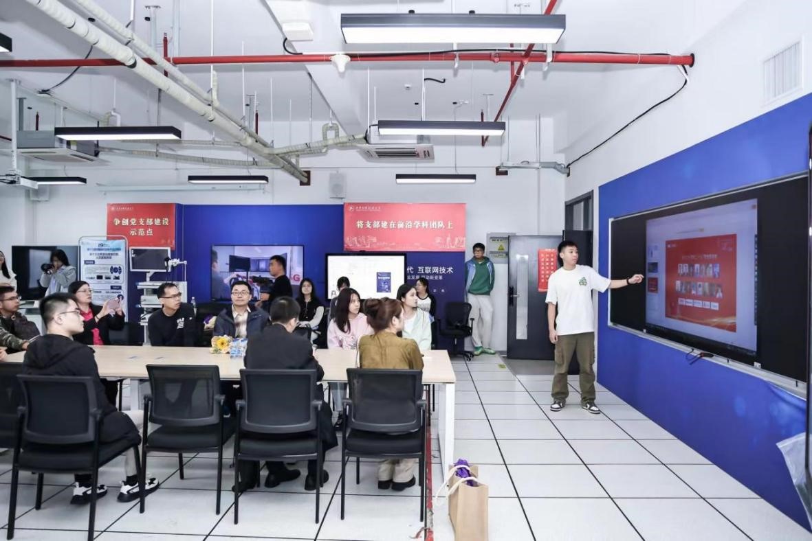 随后,校友们移步至7楼的5G+人工智能应用联合创新实验室,学生志愿者从实验室历史、人工智能产业研究院架构、研发团队、各种核心技术和实际场景应用为大家深入浅出地进行了讲解。
