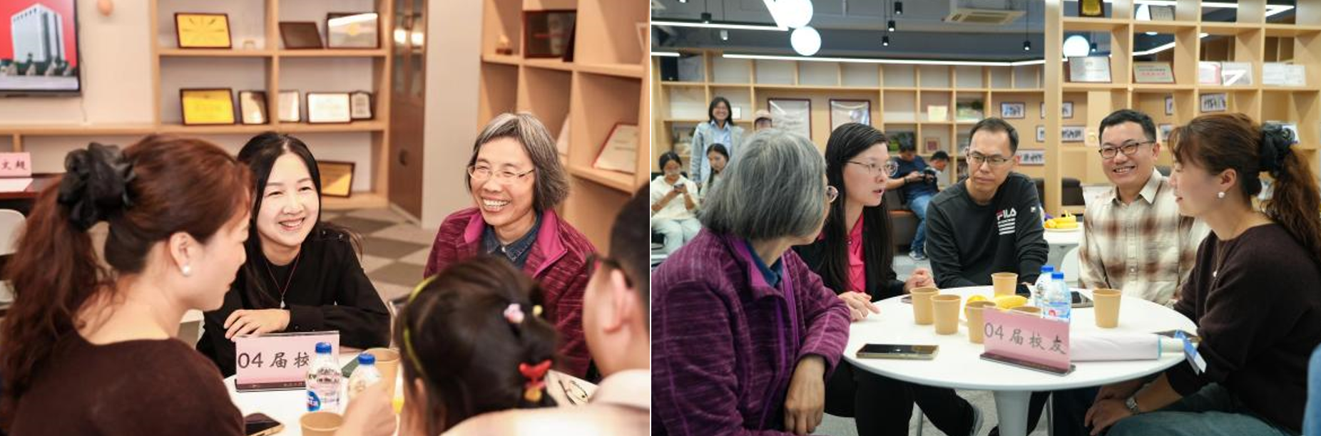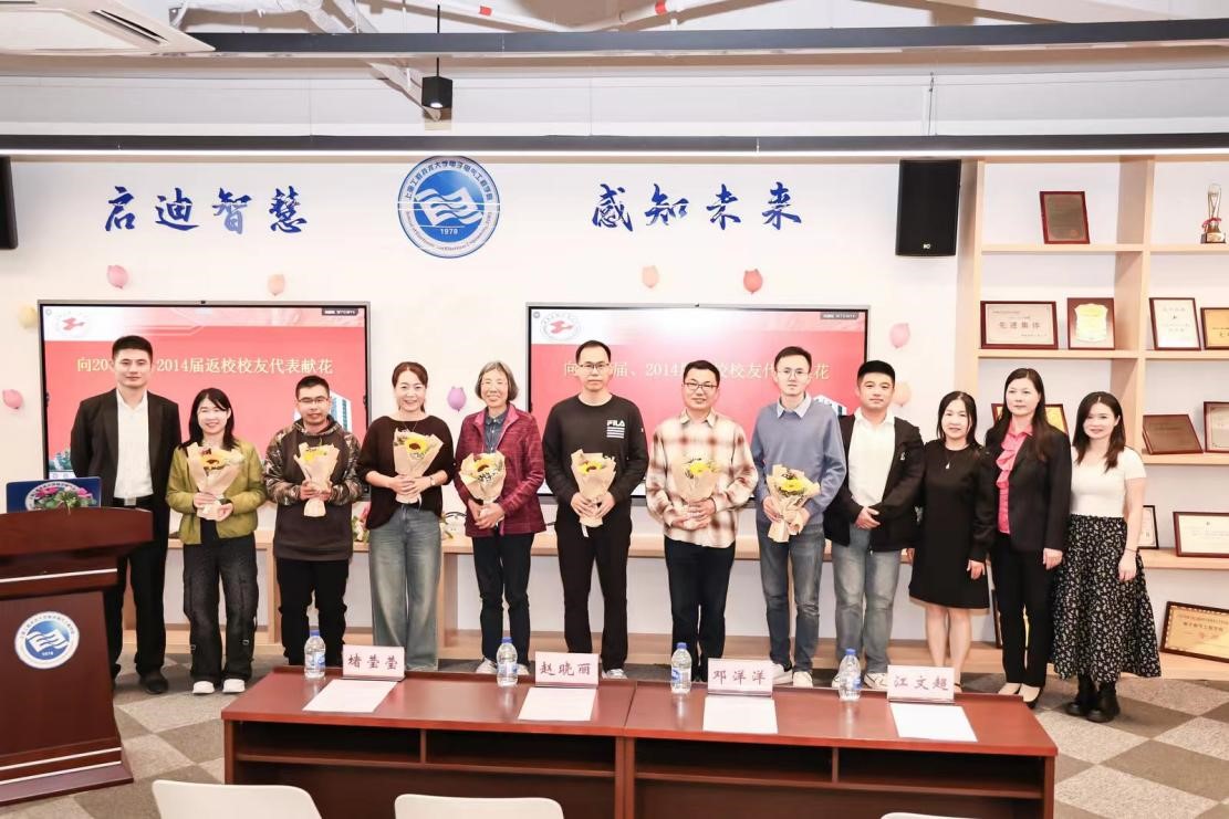 在师生座谈环节,校友和老师们进行了自由交流和亲密互动。最后,学弟学妹依次为校友们献上了鲜花,祝福校友们永葆青春活力、身心健康,并合影留念。