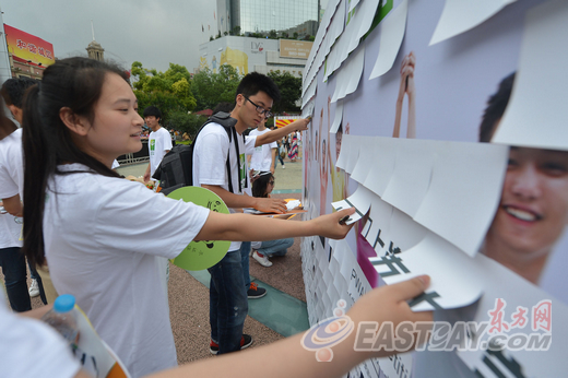 6月5日报道:“微公益•梦启航”上海市大学生公益广告大赛今天上午在南京路步行街世纪广场举行启动仪式。本次大赛由市委宣传部、市文明办、市教卫工作党委、市教委联合主办,上海工程技术大学、上海理工大学承办,全市各大高校共同参与。市委宣传部副部长、市文明办主任燕爽,市教卫党委副书记、市教委副主任高德毅共同启动大赛。 启动仪式现场,12幅主题鲜明的大学生公益涂鸦作品引人注目,入场处别具匠心的公益涂鸦撕纸墙让人驻足。此次大赛从4月28日起开始“预热”,组委会通过上海大学生网络互动社区向全市大学生发出“征集令”,在征集大赛标识和主题的同时,提供若干公益主题,全市30万大学生在线投票,截止5月15日,选出了志愿服务、生态保护、光盘行动、尊老爱幼、低碳出行、绿色消费、社会责任、网络公德、意志坚强、心理健康、食品安全和出彩人生等十二个公益主题。来自本市12所高校的大学生们将这些公益主题以涂鸦的方式展示出来,以12幅主题鲜明的作品传递公益理念。 大学生们不仅设计制作公益涂鸦作品,更组成一支支公益践行队伍,传播和升华作品理念。启动仪式上,与会领导为来自沪上高校的13支公益行动队授旗,并为获得大赛最佳主题创作奖、最佳标识设计奖等奖项的同学颁发了奖杯和证书。今天正值世界环境日。结合今年环境日的世界主题“思前、食后、厉行节约”(Think.Eat.Save)和中国主题“同呼吸、共奋斗”,启动仪式结束后,大学生们开展了丰富多彩、富有创意的公益践行系列活动。以旧锅碗瓢盆为“乐器”的乐队,奏出悠扬曲调;”Paint the world Green”(让世界充满绿)行为艺术表演,展现了公益传播最时尚的手段;“我的公益主张”——与市民互动项目中,志愿者用备好的彩色卡纸、刮蜡纸等请在场市民用一句话写出环保理念、公益梦想、文明建议等,凸显世界环境日主题,在参与活动的市民中选出较好的创意,用拍立得拍下照片赠送市民;废物换绿活动中,志愿者向市民宣传“同呼吸,共奋斗”的环保理念,鼓励市民用手边的废旧物品换取志愿者手中的绿色盆栽。 志愿者用备好的彩色卡纸、刮蜡纸等请在场市民和大学生用一句话写出环保理念、公益梦想、文明建议。 据悉,本次大学生公益广告大赛将征集平面、广播和视频三个类别的广告作品。比赛结束后,组委会将聘请业内专家对作品进行评审,并计划于9月中旬举行颁奖仪式。此次大学生公益广告大赛获得了解放日报、文汇报、新民晚报、上海广播电视台、上海教育电视台、东方网、新华社上海分社新媒体中心等媒体和相关单位的支持。获奖作品将通过各传统媒体和新媒体刊登、播放。 以生态保护、光盘行动、尊老爱幼、低碳出行、绿色消费等为主题的12幅大学生公益涂鸦作品引人注目。 原文连接: 东方网:http://sh.eastday.com/m/20130605/u1a7438390_4.html 转载连接: 新浪网:http://news.sina.com.cn/c/p/2013-06-05/130727319132.shtml 和讯网:http://news.hexun.com/2013-06-05/154877702.html 搜狐网:http://roll.sohu.com/20130605/n378072222.shtml 温州网:http://news.66wz.com/system/2013/06/05/103674320.shtml 中国经济网: http://gongyi.ce.cn/xwrd/xmzl/feigongmujijinhui/201306/05/t20130605_911117.shtml