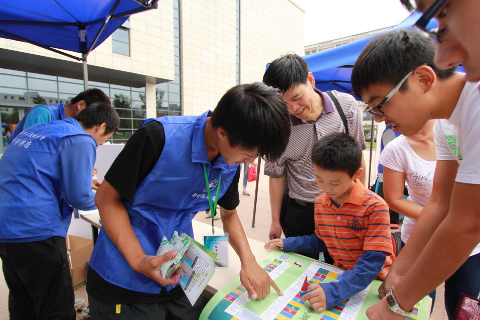 “请问废电池是有害垃圾吗?”“请在10秒内说出环保袋的三个有点,答对前进4格。”“使用节能材料,前进4格。”“踩踏草坪,倒退8格。”日前,上海工程技术大学团委科学商店在进社区向青少年推广科普知识过程中,推出了“低碳之路”垃圾分类科普桌面游戏,受到社区青少年欢迎。 这款“低碳之路”垃圾分类科普桌面游戏是以“大富翁”游戏为蓝本,针对6至12岁青少年而设计的一款游戏。游戏规则简单易懂,让青少年容易上手。大学生设计者在游戏中设置了“请问废电池是有害垃圾吗?”“烟头是其他垃圾吗?”“菜根菜叶是厨余垃圾吗?”等问题,并用国际通用的橙色、蓝色、红色和绿色进行标注,青少年玩家只要稍加归纳便知道果皮菜皮是厨余垃圾,可乐罐、饮料罐是可回收垃圾,电池等式有害垃圾,烟头、尘土等是其他垃圾。游戏旨在让青少年学生在游戏过后既了解分类方法,也了解了每项分类中涉及的具体内容。 设计者叶嘉骏同学表示:“桌面游戏是当下流行的互动游戏,在‘桌游’中,玩家不仅可以享受游戏的乐趣,而且同时可以增进朋友群体彼此的感情。其实做好科普服务并不难,从身边事做起,从文明自律做起,借时下热门的桌游形式来倡导科普公益,更能吸引大学生和社区居民关注公益、关注环保,这就是我设计这款游戏的初衷。” 他还表示,工程大科学商店的志愿者们还将针对青少年(学龄前、小学、初中、高中)、中老年和白领居民的不同知识结构和科普需求设计不同类型的桌面游戏,将游戏和科普结合,,倡导绿色公益的正能量,使得科普活动老少咸宜。 科学商店是高校服务社区的一个窗口,大学生志愿者在提供科学知识服务过程中,运用所学,并加入时下热门的桌游元素,让居民在活动过程中“寓教于乐”。科学商店的志愿者们充分利用这个窗口,在此平台上用自己的行动,肩负起科普的责任,人人争当公益达人为校园文明和社会文明贡献力量。 原文链接: 上海教育新闻网: http://www.shedunews.com/zixun/shanghai/gaodeng/2013/10/11/572175.html |