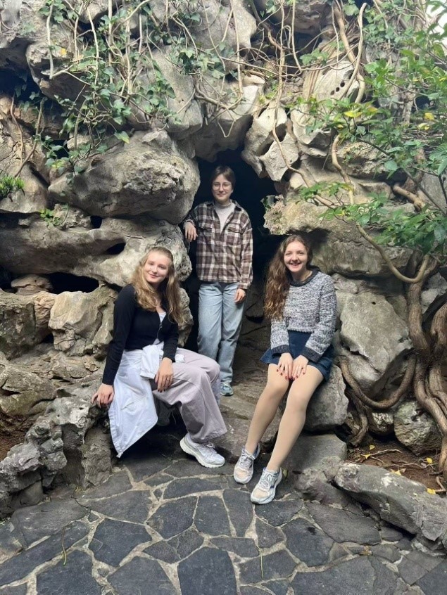 随后,团队参观了木渎著名园林——严国馨的私家花园,园林之美让留学生们流连忘返,纷纷表示被江南园林的雅致和精巧所折服。漫步于古镇中,学生们欣赏独具风韵的江南水乡风光,并合影留念。在古镇的各处景观前,留学生们沉浸于山水之间,领略到了中国传统文化的独特魅力。