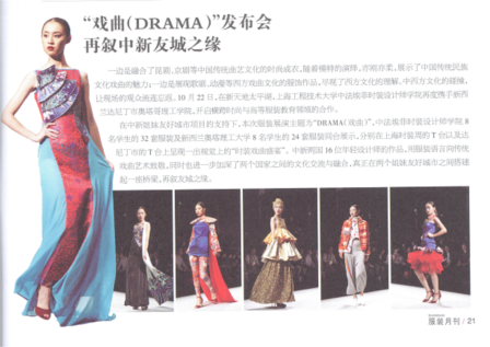 一边是融合了昆剧、京剧等中国传统曲艺文化的时尚成衣,随着模特的演绎,亦刚亦柔,展示了中国传统民族文化戏曲的魅力;一边是展现歌剧、动漫等西方戏曲文化的服饰作品,尽现了西方文化的理解。中西方文化的碰撞,让现场的观众流连忘返。 在中新姐妹友好城市项目的支持下,本次服装展演主题为“DRAMA(戏曲)”,中法埃菲时装设计师学院8名学生的32套服装及新西兰奥塔理工大学8名学生的24套服装同台展示,分别在上海时装周的T台以及达尼丁市的T台上呈现一出视觉上的“时装戏曲盛宴”。中新两国16位年轻设计师的作品,用服装语言向传统戏曲艺术致敬,同时也进一步加深了两国之间的文化交流与融合,真正在两个姐妹友好城市之间搭建起一座桥梁,再叙友城之缘。