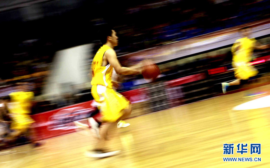 球员在场中运球。