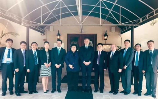 汪泓书记、张小松主任、张林副主任、史健勇副校长、王友农董事长一行与MSC地中海邮轮公司执行主席Pierfrancesco Vago先生,首席执行官Gianni Onorato先生,MSC地中海大中华区总裁黄瑞玲女士会面