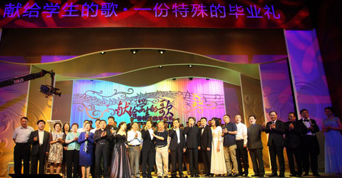 本报上海6月27日讯(记者 董少校)校领导班子与学生同唱《送别》,书记和校长共奏民乐《常回校看看》……今晚,“献给学生的歌”文艺晚会在上海交通大学举行,来自上海15所高校的书记、校长与毕业生们同台演出,以歌寄情,以歌励志,用朋辈身份送别毕业生,献上一份特殊的毕业礼。