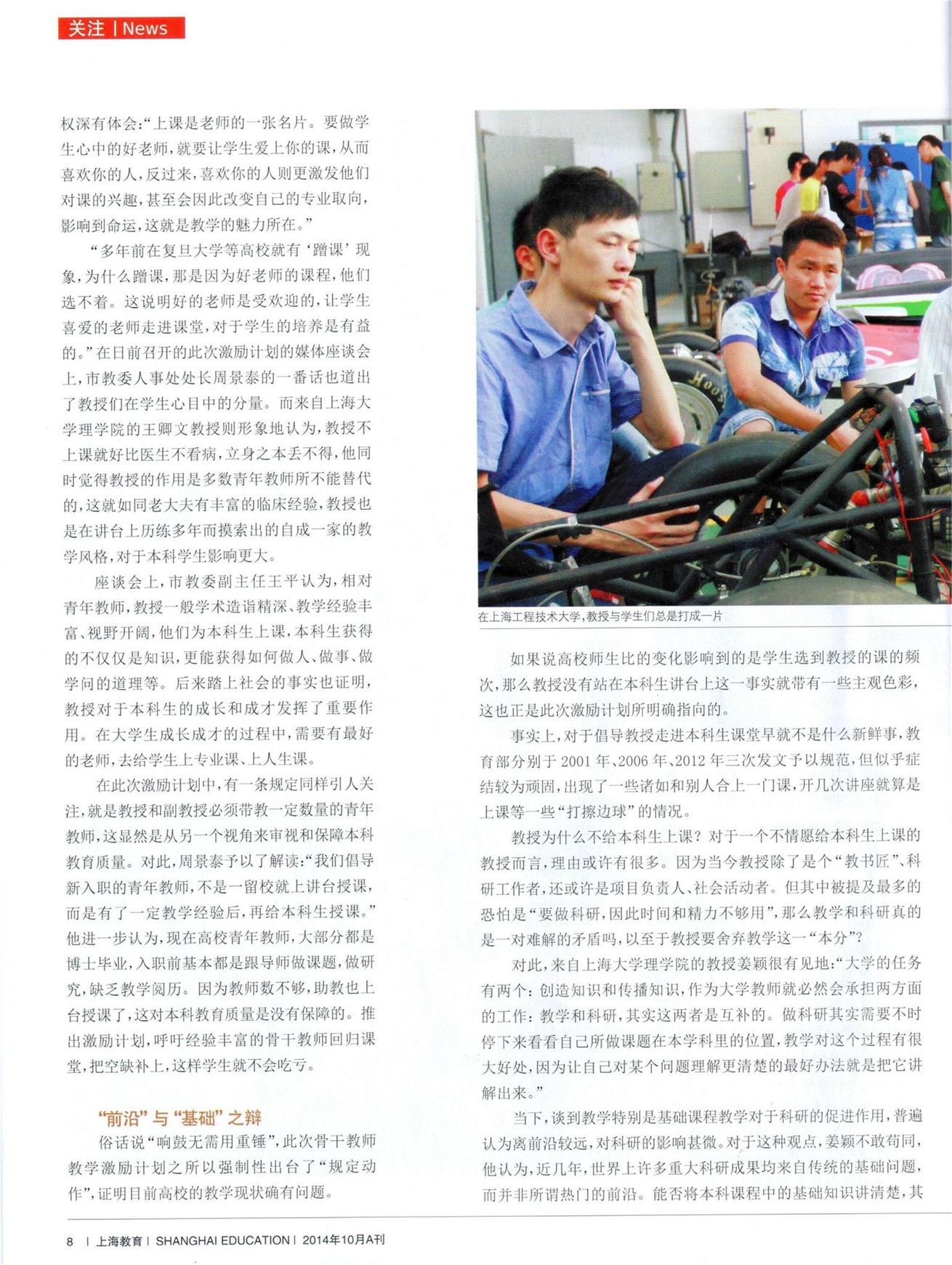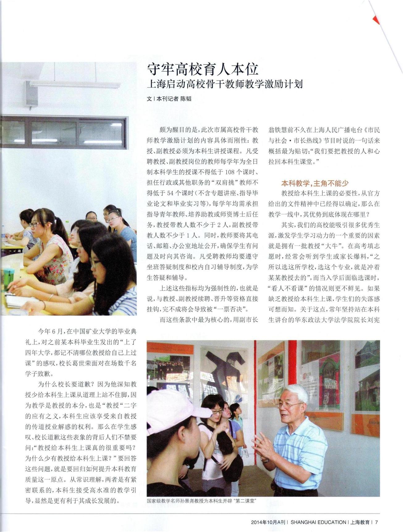 而这些条款中最为核心的,用副市长翁铁慧走进前不久在上海人民广播电台《市民与社会。市长热线》节目时说的一句话来概括最为贴切;“我们要把教授的人和心拉回本科生课堂。”