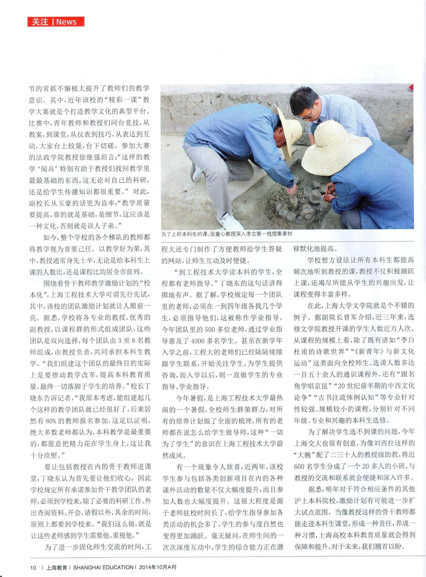能够将科研成果与课程内容相结合,张童心是花了不少心思的,仅仅是一门针对本科生的通识课“考古发现与华夏文明”,他就设计了课堂理论教学、校外专家讲座、考古现场考察(带队前往松江广富林发掘现场)等,将一门课上出了趣味、上出了深度。曾有同学在上完张童心的课后感慨:“