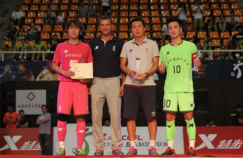 5比2,北京体育大学队战胜首次闯入决赛圈的上海工程技术大学队,并以7比2的总比分蝉联特步大五联赛总冠军。在