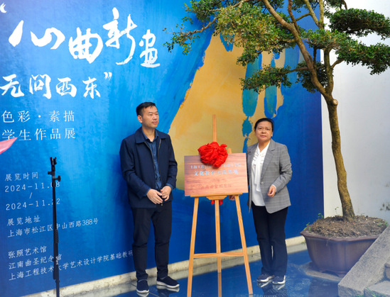 为充分展示基础课程实践成果和学生实践能力,引导学生走出画室、走进街区、走向社会,11月8日,艺术设计学院在张照艺术馆举办色彩•素描学生作品展暨上海工程技术大学艺术设计学院文化教育实践基地揭牌仪式。学院党委书记李云先、副书记刘江、松江区文化和旅游局公共服务科科长汪宏伟,上海致谛美视觉艺术有限公司设计总监李伟峰,教师代表顾劲松、钱保纲、应海明、杭天以及参展学生代表等参加。