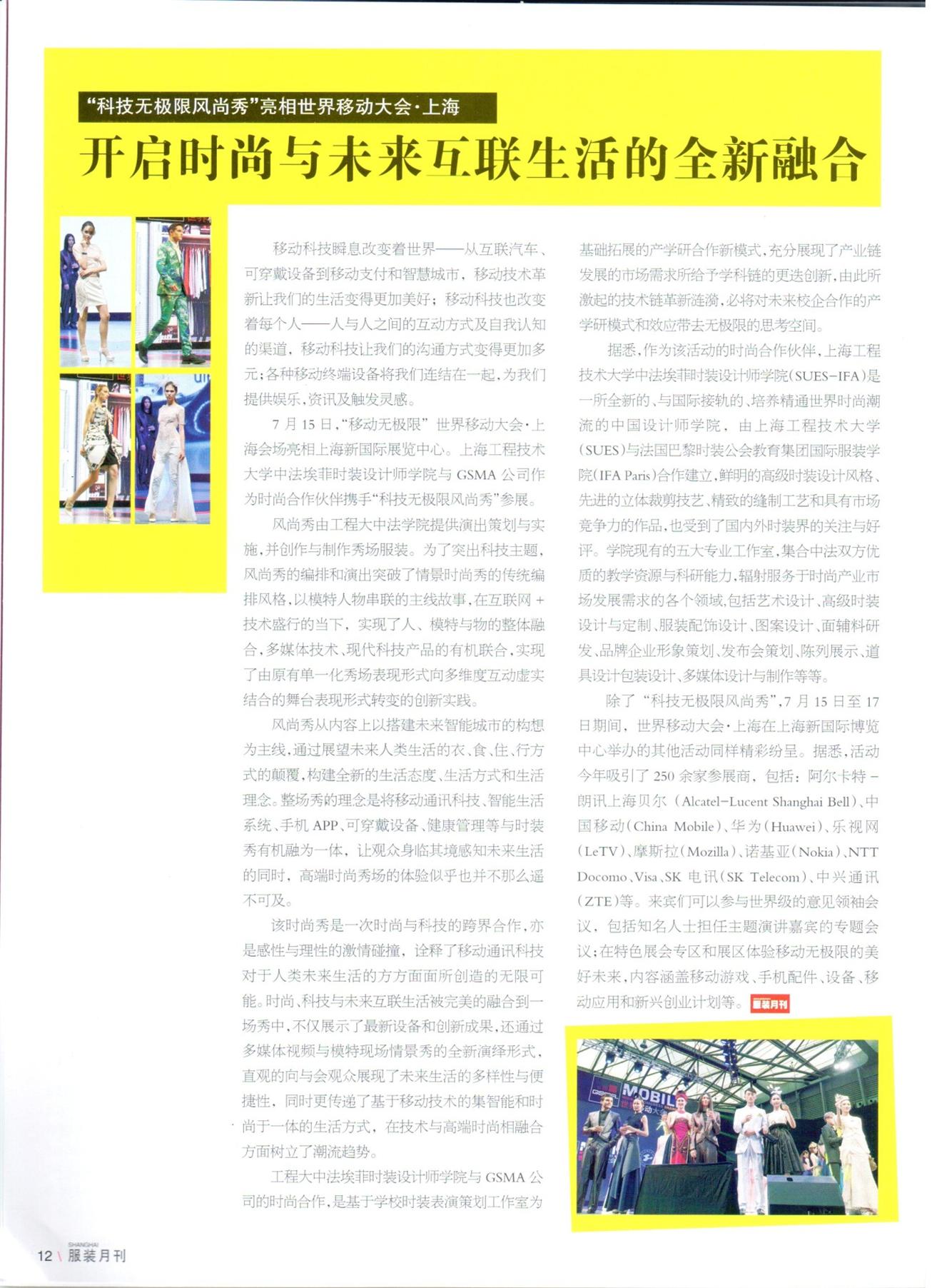 该时尚秀是一次时尚与科技的跨界合作,亦是感性与理性的激情碰撞,诠释了移动通讯科技对于人类未来生活的方方面面所创造的无限可能。时尚、科技与未来互联生活被完美的融合到一场秀中,不仅展示了最新设备和创新成果,还通过多媒体视频与模特现场情景秀的全新演绎形式,直观的向与会观众展现了未来生活的多样性与便捷性,同时更传递了基于移动技术的集智能和时尚于一体的生活方式,在技术与高端时尚相融合方面树立了潮流趋势。