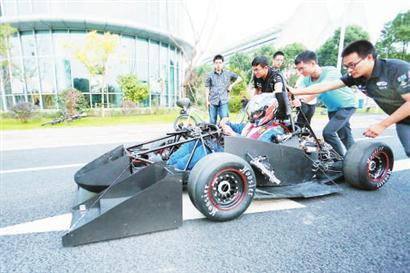 据了解,大学生方程式比赛要求,参赛车队必须在一年内,自行设计和制造一辆在加速、制动、操控性等方面具有优异表现的小型单座方程式赛车,赛车并不是单纯强调速度,还要在安全性、可靠性、经济性和操控性中寻找平衡。轻量化是赛车设计制造的亮点之一,据介绍,赛车采用了贵重的航空铝合金、碳纤维等材料,整车净重约
