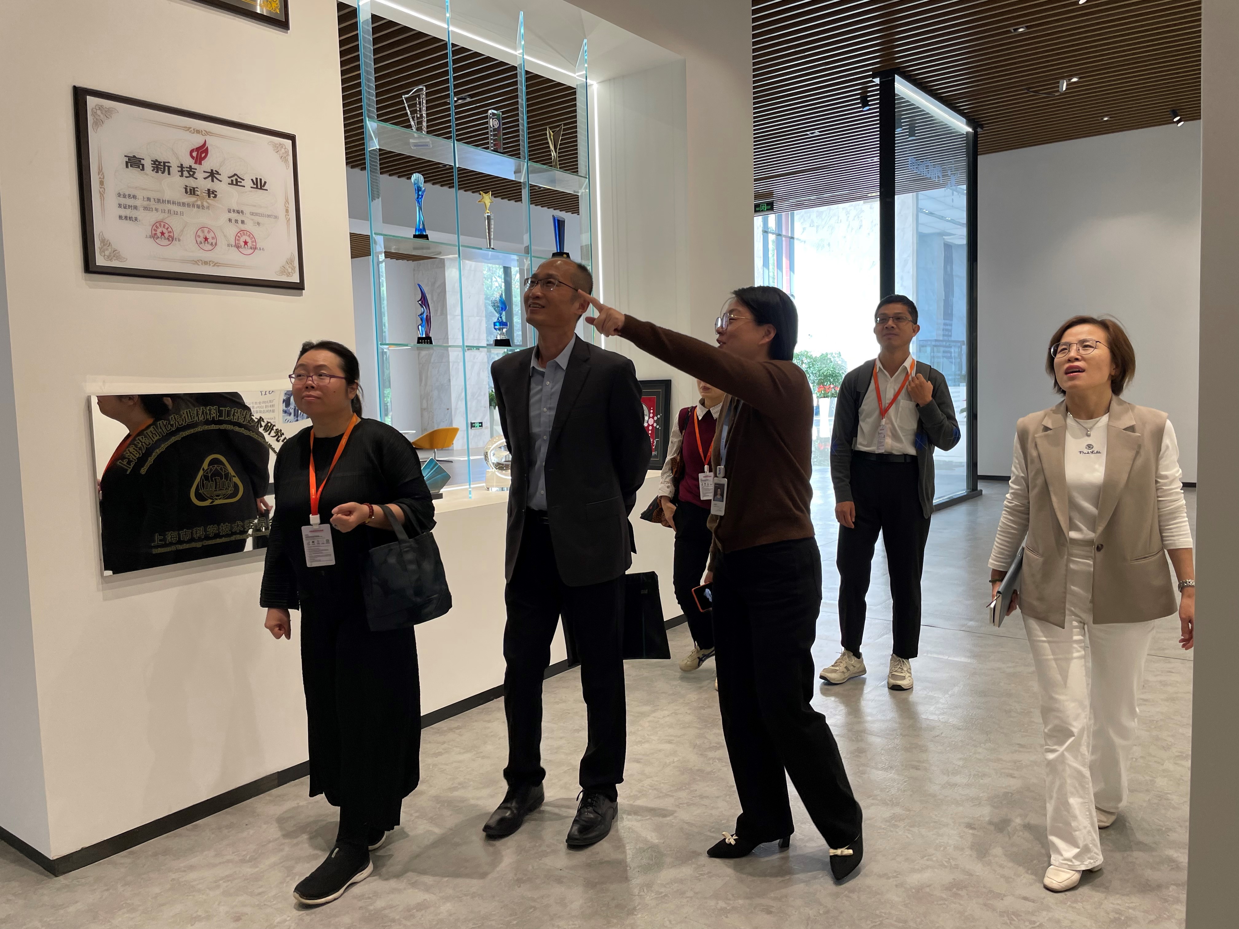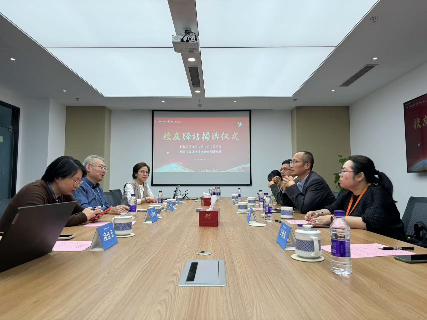 11月12日下午,化学化工学院一行前往上海飞凯材料科技股份有限公司进行走访交流,并举行校友驿站挂牌仪式。此次活动旨在加强校企合作,深化产学研融合,同时慰问在该企业工作的校友,搭建校友与母校之间的桥梁。化学化工学院党委书记宋勤健、学院党委副书记秦颖、高分子材料与工程系副系主任陈凯敏、就业及校友工作相关辅导员老师,飞凯副总经理王寅生、HR总监常环、招聘经理庄潇彬及徐忆卢等6名校友参加了此次揭牌仪式。