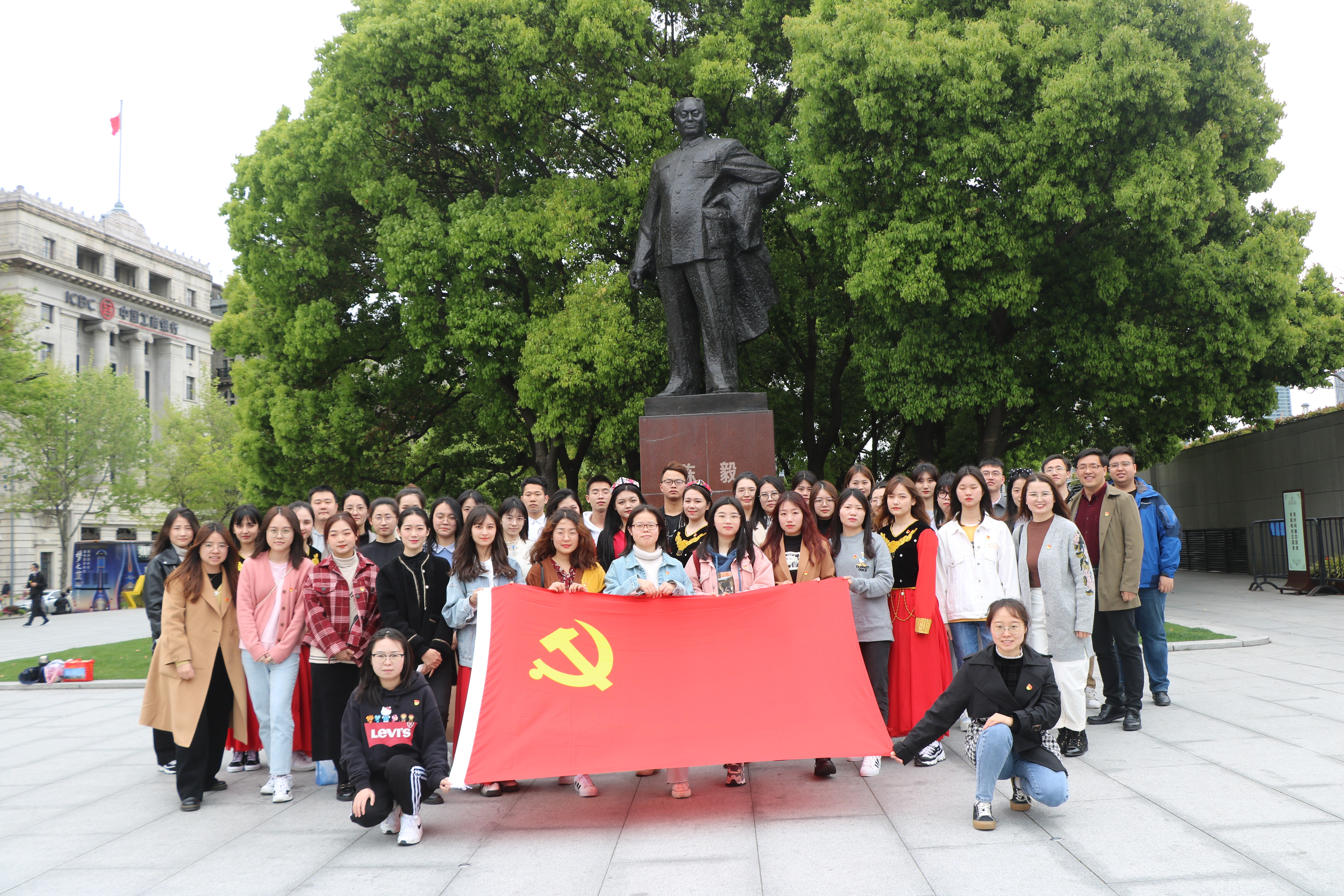 一行人第一站来到陈毅广场,广场中央昂然矗立着新中国成立后,上海市第一任市长陈毅同志的雕塑,该雕塑既是为了纪念陈毅市长曾为上海做出的卓越贡献,亦是希望老市长可以见证上海的日新月异。