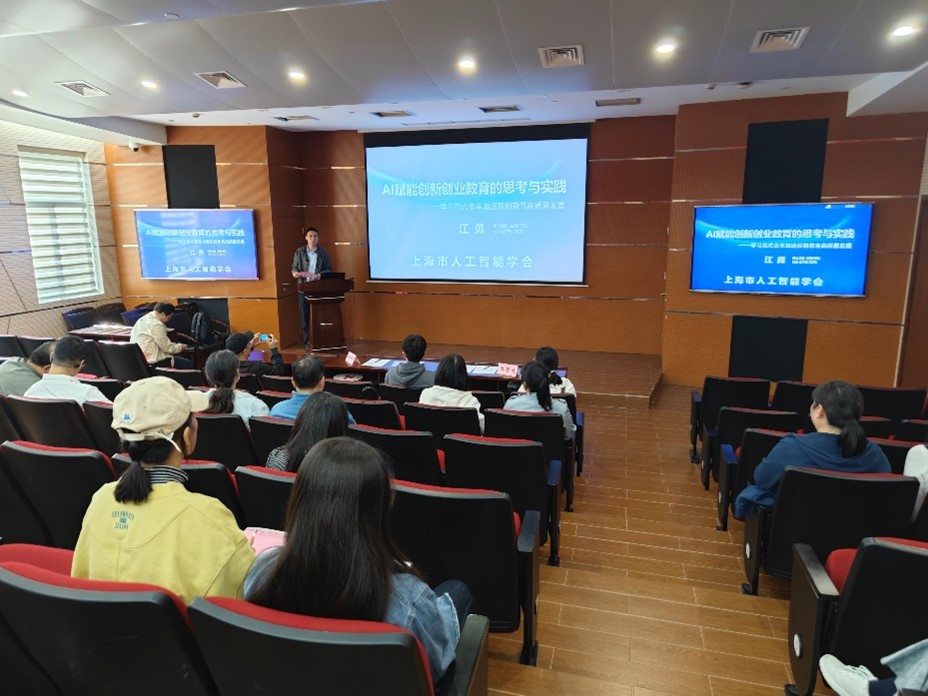 本次培训邀请上海市人工智能学会副秘书长江勇研究员主讲,他提出,人工智能领域不仅仅是知识和技术的运用,更是教育思维的一次革命,强调每位老师都应该站在未来发展的角度指导学生进行创新创业,鼓励学生进行跨学科、多维度的发展。鼓励老师们积极运用人工智能技术赋能双创教育,培养出产业和行业需要的创新人才。