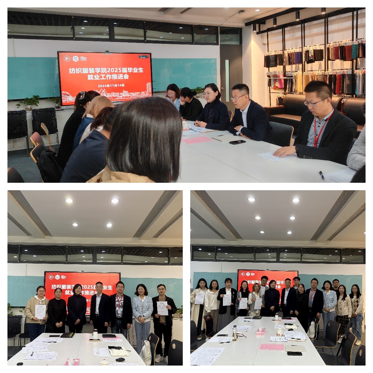 纺织服装学院党委书记朱君璇、院长辛斌杰在讲话中强调了毕业生就业工作的重要性,要求全体教师齐心协力,以饱满的热情、扎实的工作作风齐心协力促进高质量充分就业,并与各系签订了2025届毕业生就业目标责任书,为毕业生的就业工作提供了有力保障。