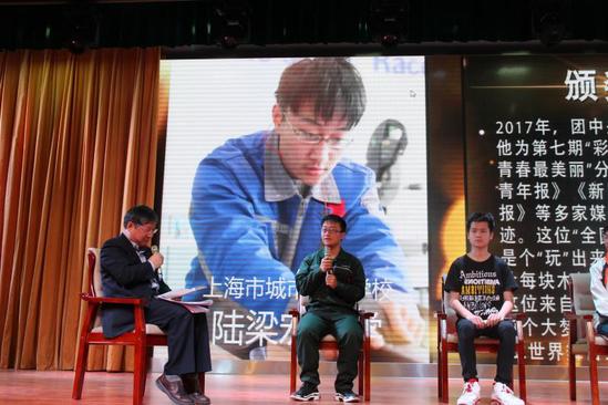 上海市城市科技学校学生陆梁宏与主持人互动