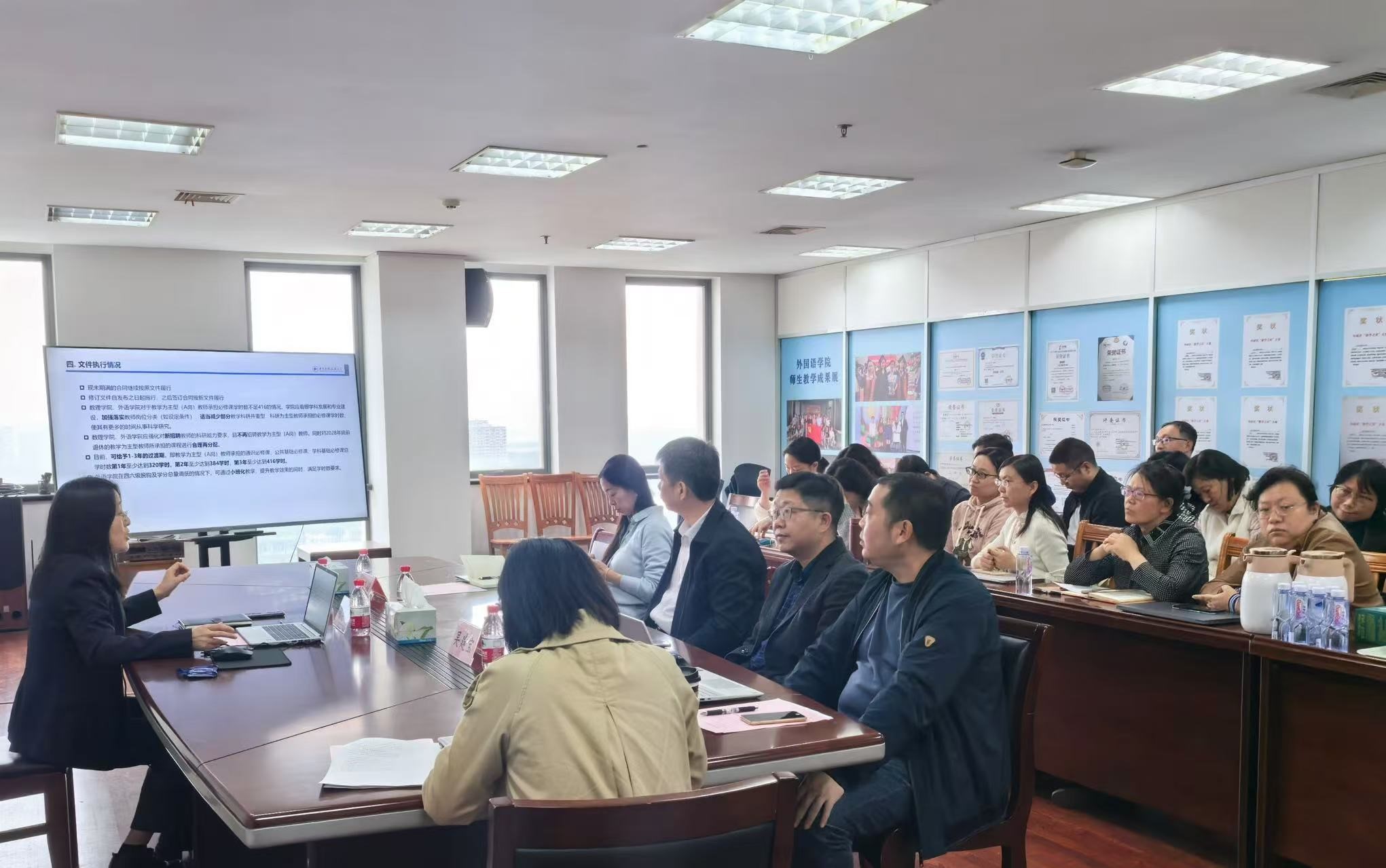 加强新时代教师队伍建设,保障教育事业高质量发展。11月14日下午,应数理外国语联合党委邀请,人事处副处长胡建平赴数理与统计学院、外国语学院专题解读新修订《专任教师岗位职责管理办法》。学院党政班子成员,系部主任及教师代表等参加会议。数理外国语联合党委书记张朝民主持文件解读会。