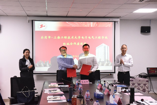 座谈会上,余长友部长与范君晖书记为“乐清市高校人才工作联络站”揭牌,黄圣伟主任与方志军院长签订产学研战略合作框架协议。电子电气工程学院副院长刘瑾介绍了学校、学院的发展现状和发展优势。乐清市长三角电气工程师创新中心主任黄圣伟介绍了创新中心的基本情况,并提出了“有基础、有市场、有未来”的合作愿景。