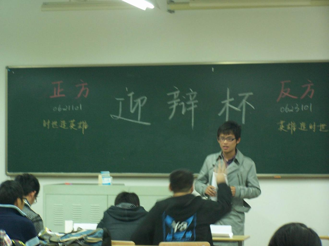 本次辩论会共设三个分会场,同时进行五场辩论赛。辩题丰富,既有时势与英雄的关系、真正的爱是否天长地久等哲学问题;也包括大学生择业原则、中国是否需要象牙塔大学以及世博应如何处理本土文化及外来文化的关系等社会问题。各班反应也不尽相同:或不温不火,友谊第一;或唇枪舌剑,针锋相对,一派青春之景,好不热闹! 本次活动不仅从逻辑、团队合作、应变等各方面锻炼了各位辩手和观众,也为汽车学院各班的交流提供了一个良好的平台。活动得到了老师和学生的热烈支持。 | |