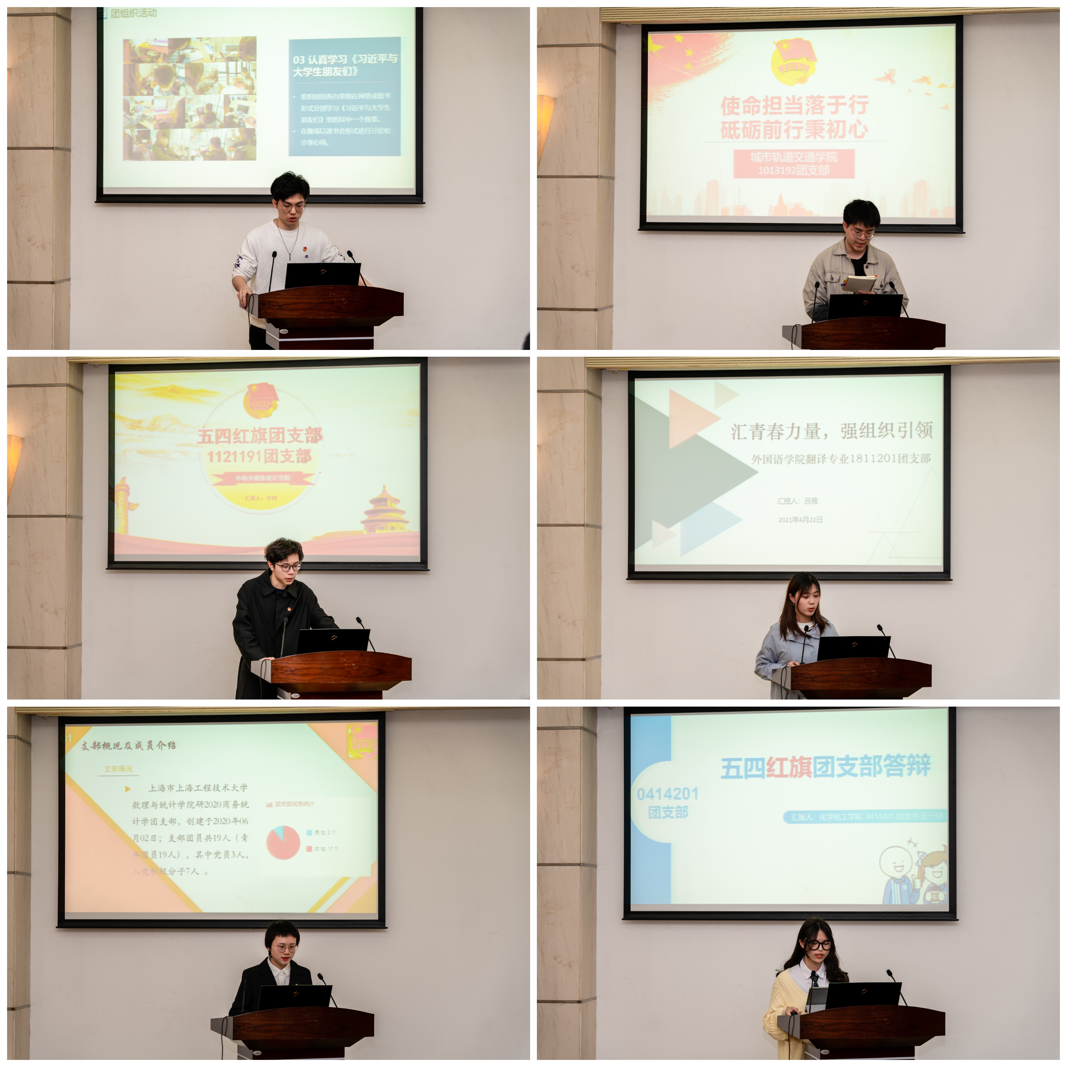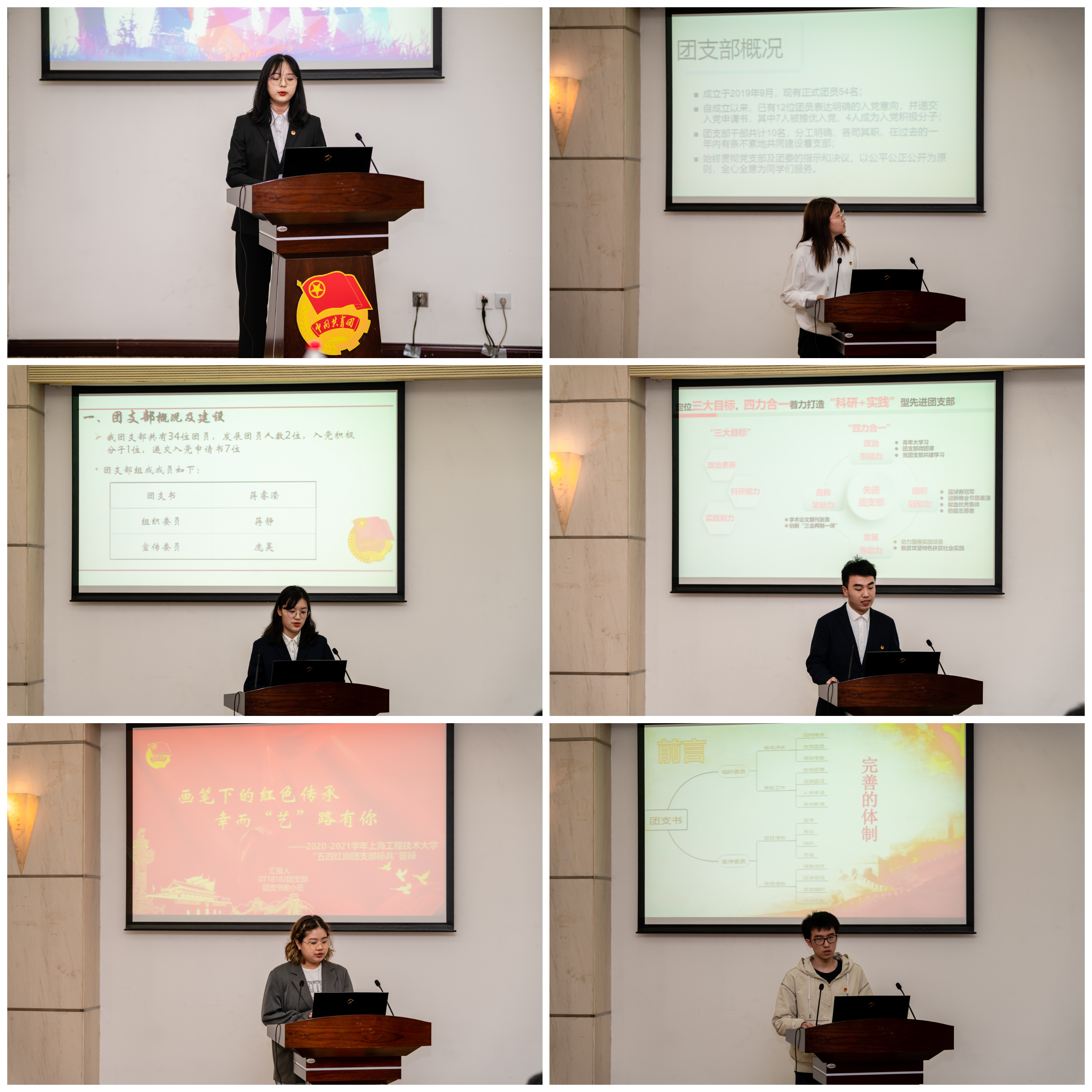13个“五四红旗团支部标兵”(推荐对象)答辩代表从思想政治引领、组织运行、工作开展、团员参与、宣传展示五个方面进行交流展示。团支部开展常态化党团学习,以严格落实“三会两制一课”为抓手,夯实组织基础;通过团学培训、团校等,提升青年综合能力;立足专业找准团支部特色,将“敢于思考,富于创造”作为准则,着力打造“科研+实践”型团支部;运用微信公众号、抖音号、B站等新媒体平台,为青年提供广阔的线上交流空间与平台,实现支部间实时互学互访。