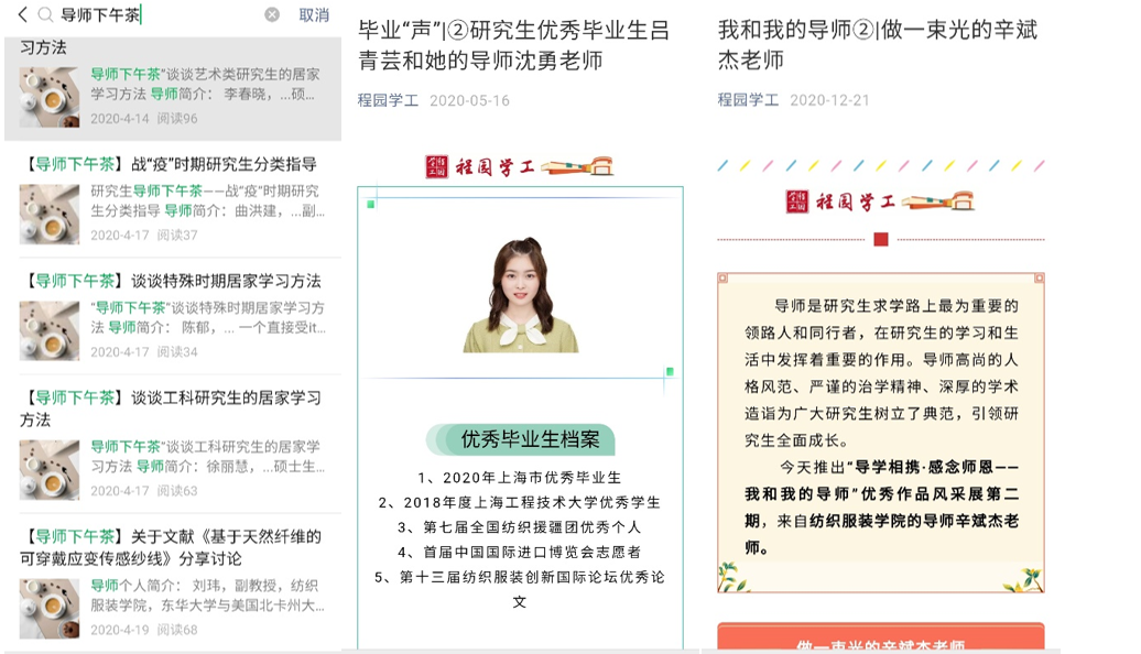 开展“奋进研途 导学共创”(师生研讨)系列思政教育活动,如咖啡香里话学术——学术微沙龙、点滴沟通,亦师亦友——导师下午茶(线上)、不忘传统,温情脉脉——师生座谈会等,给研究生导师们与学生提供了更多对话的平台和机会,在沟通中激发思考,启迪智慧;开阔视界,实现教学相长;加深理解,实现精神沟通。