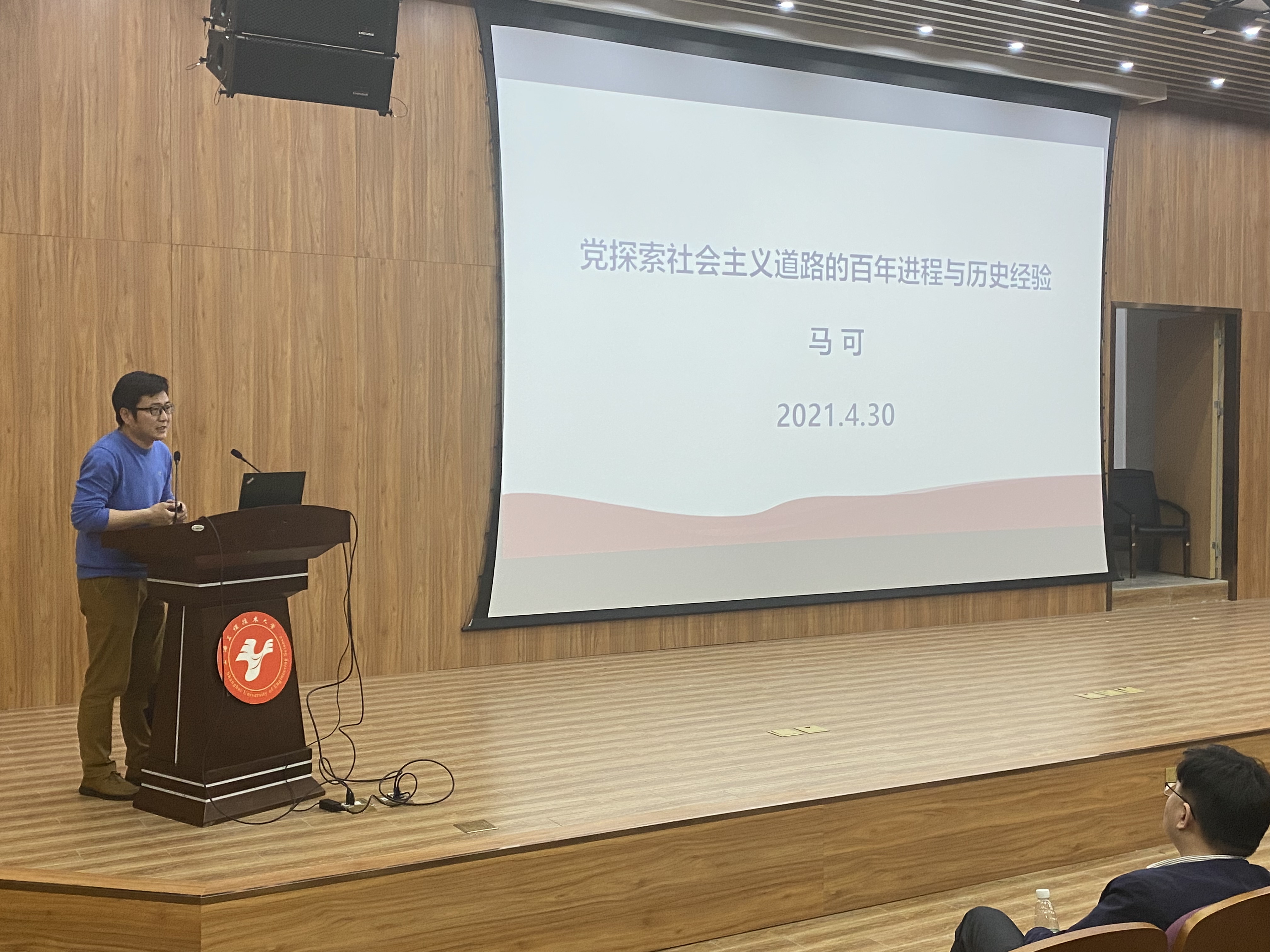 为进一步从党的百年伟大奋斗历程中汲取迈进新征程、奋进新时代的智慧和力量,推进学院更高质量发展,4月30日下午,机械与汽车工程学院党委邀请马克思主义学院马可副教授作题为“党探索社会主义道路的百年进程与历史经验”专题学习报告,学院全体教职工参加会议,会议由学院党委书记虞蓉主持。