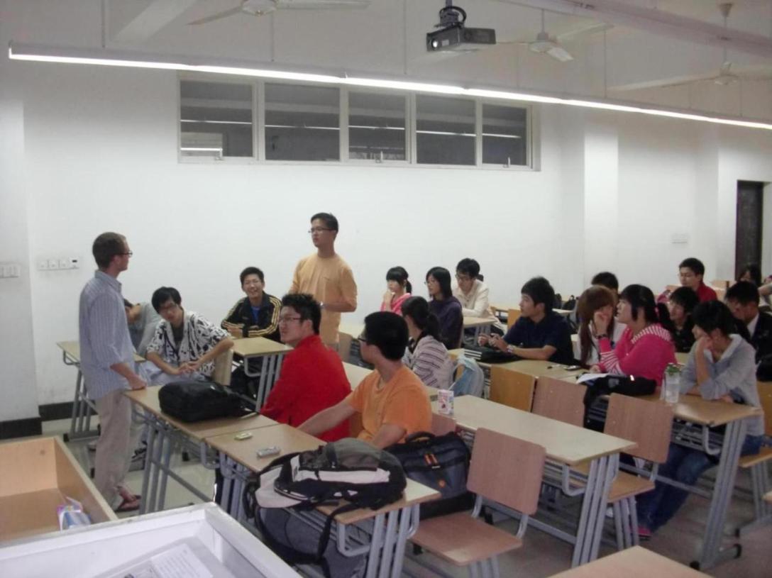 |  为了切实提高学生的口语运用能力,提高同学们的英语综合水平,管理学院学生会学术部在学校举办了“Enjoy Us at English Corner”英语角的活动。 本次活动于10月18日16:45,在教学楼E110教室准时举行。在时长30分钟的活动中,同学们与外教老师Brown进行了广泛而深入的交流。在这次的交流活动中,Brown向同学们介绍了许多英语学习的方法与技巧,使同学们感到收获颇丰,提高自己的交际能力和沟通能力。虽然时间较短,但活动在同学们的欢声笑语中悄然结束。外教对同学们的表现给予了充分的肯定,并对这个活动表示支持。 在这个活动中,同学们不仅仅是积极参加与外籍教师的活动,更重要的是有足够的勇气进行交流和表演,这样不仅仅能帮助同学们锻炼自己的口语,增进同学之间的了解,丰富了大家的课余文化生活,更使同学们学到了更多的西方文化和知识。