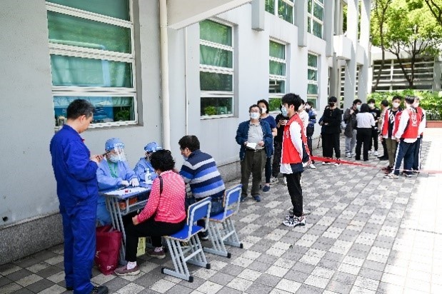 为确保疫苗接种工作有序开展,学院、校党委书记倪智勇,党委副书记、院校长沈勤亲临疫苗接种现场,指导落实相关任务。学院、校党办负责对外联系虹口区公共卫生学校、江湾街道组织协调医务人员;校办负责疫苗接种现场协调;学生科、团委派驻“小螺钉”志愿者现场流程引导;保卫科负责引导车辆出入、隔离带拉设;资产科负责现场用电保障;工会、基础教学部负责提供距离移动接种车均不足20米的疫苗接种留观室、急救室;后保负责疫苗接种场地消杀;各支部、学生科负责组织教职员工、学生前往接种。