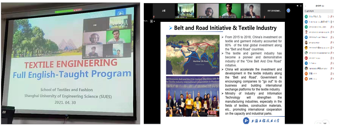 4月30日下午,为进一步推进纺织服装学院纺织工程全英文本科授课专业的建设工作,加强专业教师与国际留学生的沟通交流,给即将步入大二的留学生们答疑解惑,学院为纺织工程(国际班)的留学生举行了线上师生见面会。学院教学副院长辛斌杰教授作了学院介绍和全英文专业的介绍,会议由国际教育学院葛素雅老师主持,纺织服装学院纺织工程系10余名教师参与了会议,并与首批全英文专业的来自巴基斯坦、孟加拉国、科摩罗、摩洛哥及刚果等5个国家的11名国际留学生做了互动和交流。