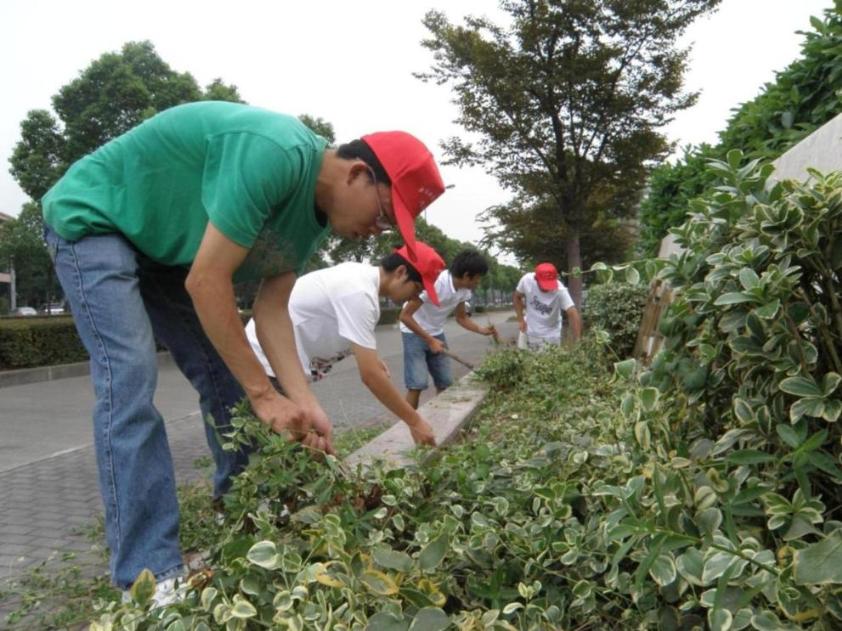 方松街道放生池居委会陈主任对同学们的到来表示欢迎,并布置了今天的任务——为小区除杂草。陈主任指定了除草区域后,志愿者们个个劲头十足。虽然有些同学是第一次除草,动作有些别拗,一不小心还会划破手指,但是大家有一股不怕苦、不怕累的精神。这也着实感动了在场的街道工作人员,他们边示范、边解释,使同学们很快掌握了技巧。志愿者的小红帽在周围的草绿中格外显眼,仿佛一朵朵小红花,充满活力。 在辛苦的除草过程中,志愿者们还有意外收获。在给一片瓜地除草时,发现了一只小西瓜,大家更是来了干劲,很快一片瓜地的杂草就被清理干净,大家也找到了三只西瓜,一旁的居民说:“这是你们的劳动成果啊!” 大家都开心极了。最后清理的杂草也装进了五个环保垃圾箱。 这次志愿者服务活动不仅使同学们掌握了除草的技能,更使他们体会到了2010年上海世博会“志在、愿在、我在”的志愿者口号。机械工程学院将一如既往地做好志愿者工作,提升志愿服务的品质,为迎接2010年上海世博会而努力!