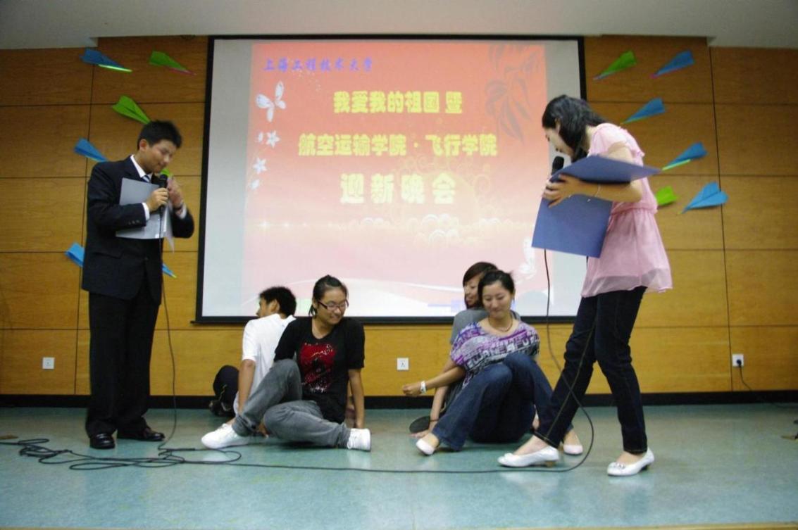 大家共同期待着7点钟声的敲响。这个平凡的时间点因航院新生节的召开而变得不同凡响。随着街舞社的登台暖场,会场内的气氛被充分调动了起来,同学们都放下了平时的拘谨。与此同时新生节也正式拉开了帷幕。 作为09届航院新生辅导员的姜孟升老师首先为新生节致辞,他表达了对09届新生的期望,并同时邀请航空运输学院党委副书记陆新生老师一同对新生的到来表示欢迎。表演活动由此展开。