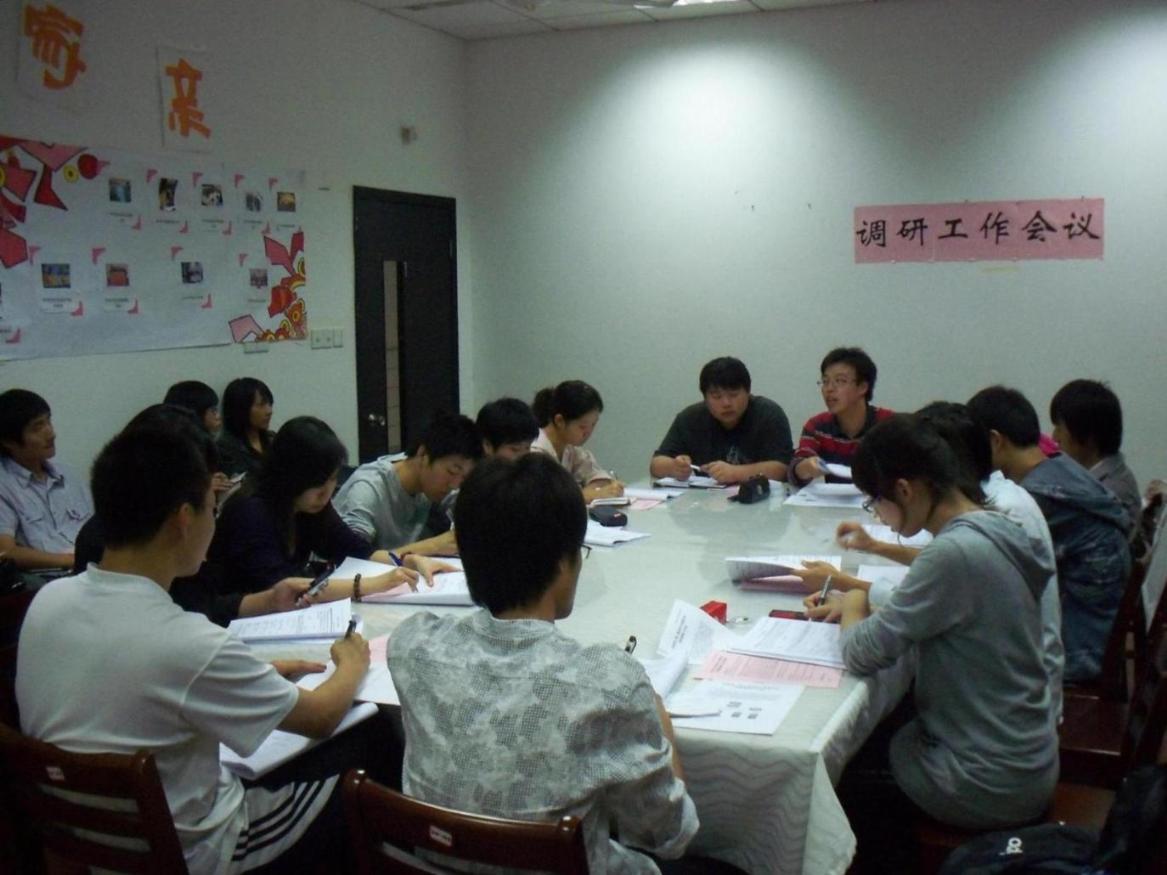 会议由校团委调研部部长张驰同学发言开始。他简要地介绍了校团委调研部的部门构架,日常工作与目前的发展形势,阐述了会议主题,并提出希望与各学院分团委在调研工作上达成共识的意愿。校团委调研部中心成员也先后进行了发言,介绍了各自所负责内容的安排。并由各学院分团委调研工作负责人填写了《上海工程技术大学院分团委学生会调研工作负责人信息统计表》。随后,各学院分团委调研工作负责人简要地叙述了自己学院以往调研工作情况以及近一阶段的工作方向与内容等。部长张弛仔细向各学院负责人了解了学院调研部的工作思路和模式,并倡导要多设计学生感兴趣的活动。