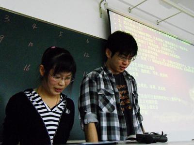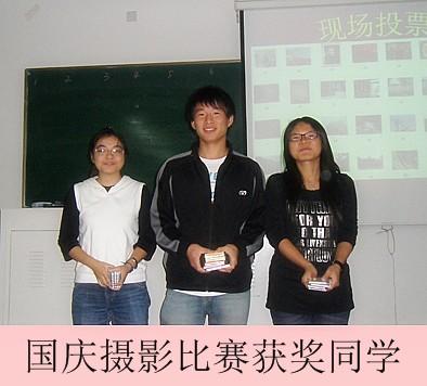 本次班会由黄启帆和陆琴琴同学担任主持,他们亦趣亦谐的主持风格促成了舞台上下师生的热力互动,现场效果极佳。由班长赵翔自制祖国的60周年华诞的视频短片拉开了整场晚会的帷幕。紧接着,在美妙的配乐声中,诸剑锋和朱慧莉同学的建国60周年诗朗诵完美演绎出激情与喜悦,很好地诠释了本次晚会的主题。 随后的国庆摄影大赛作品评比和国庆有奖问答更是精彩不断,高潮迭起,同学们掌声雷动,欢乐声一浪高过一浪。在选票统计期间,诸剑锋、周佳庆、黄慧敏、范芸、王瑛等同学为我们歌唱了《明天会更好》、《同一首歌》和《五星红旗》等爱国歌曲,动人的旋律声声入耳,自然地带动了场下的观众齐声合唱,充分体现了同学们对于祖国母亲的热爱。伴随着悦耳、美妙的歌声,摄影比赛的前三名也已产生,分别由叶涛、顾诗怡和杨婕妤同学获得。在大家热烈的掌声中,辅导员老师和班主任纷纷上台为获奖选手颁奖,场面温馨而感人。