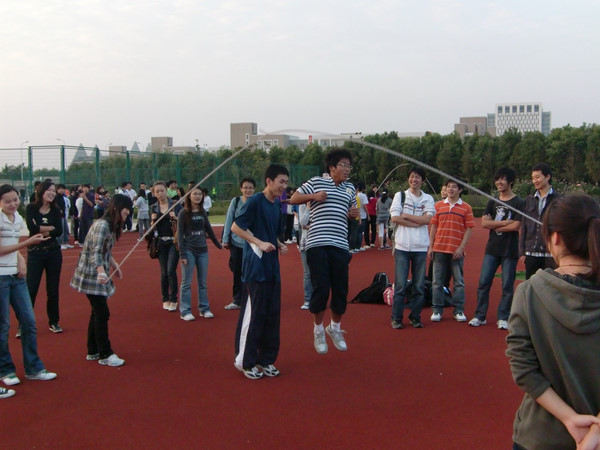 随着体育部长虞堃的一声令下,各支队伍展示出了早已练习多日的成绩:比赛选手们动作轻盈,配合默契,跳出了感觉,跳出了节奏。负责摇绳的同学也神情专注,努力配合着跳绳的选手,尽量减少失误,节奏高度协调,默契程度也不言而喻。 一支参赛队伍的负责人介绍说:“队员们每天早晨都坚持练习,在练习过程中一旦有动作不协调就停下来,重新排练,直到每位队员之间都形成了相当高的默契程度。” 比赛已临近尾声时,各位参赛选手却更富活力,丝毫没有显露出疲态,负责摇绳的同学摇得更加卖力,队员们也跳得更快,更高。节奏也加快了。团体协作精神此时也充分体现出来。 随着长绳比赛的举行,管理学院冬运会也随即拉开序幕。同学们动起来,展现大学生的活力神采吧。