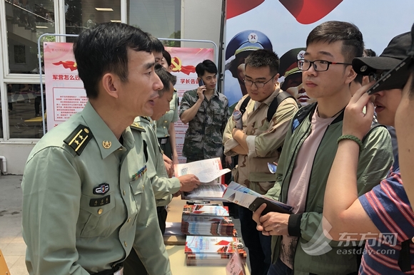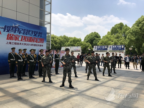 东方网5月9日消息:如何鼓励优秀大学生携笔从戎参军报国?近日,上海全市高等学校依法受理大学生兵役登记、征兵报名、初检初审和确定预征对象等工作。今天上午,上海工程技术大学举办2018年大学生征兵现场咨询和报名活动。校园内整齐悬挂着征兵宣传横幅,橱窗内依次展示着退伍士兵海报,有志青年纷纷来到现场咨询征兵政策,了解部队生活,许多同学当场填写了报名表并在签名墙上庄严写上了了自己的名字。咨询会上,10余名优秀退伍男生演练了英勇威武的刺杀操,2名退伍女大学生士兵演练了干净利落的搏击术,展示了良好的个人战术素养和团队合作精神,吸引了周围其他同学纷纷驻足观看并合影留念。