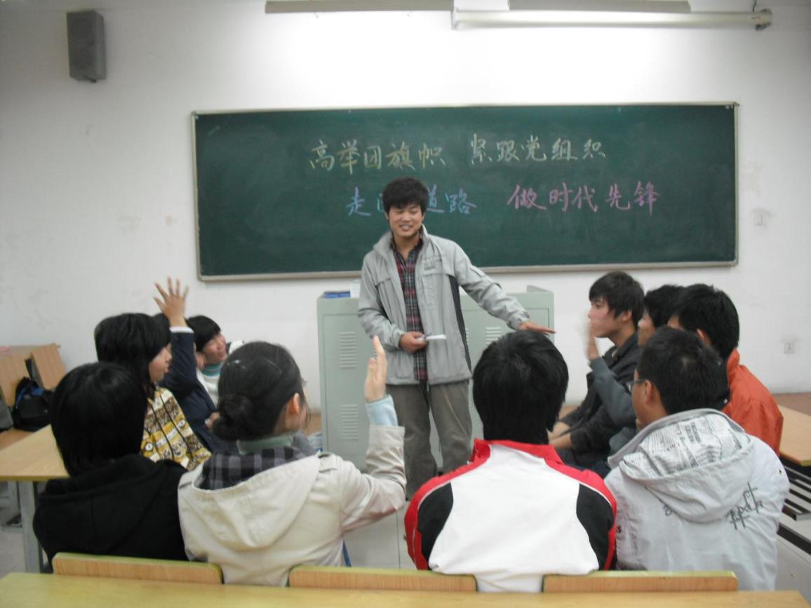 |  11月3日晚,由管理学院0312092金融(2)班组织的每月一次的团组织生活在教学楼E411教室热烈举行。学院辅导员李静老师和分团委学生会组织部的部分干事,以及金融(2)班的全班同学参加了这次活动。本次团组织生活的主题是“高举团旗帜,紧跟党组织,走团结道路,做时代先锋”。为落实好“团结”的口号,班委组织同学开展了一系列的合作类游戏。整个活动从晚上18:30开始,历经一个半小时结束。此次团组织生活的开展,拉拢了同学们之间的关系,促进了同学与老师之间的交流也加深了对团组织的认识。每月的团组织生活是宣扬党的精神,加强同学之间沟通的有力渠道。也让每一位加入其中的同学体会到了家的感觉和团结的力量。我们有理由相信,今后的团组织生活会更成功,更多彩!