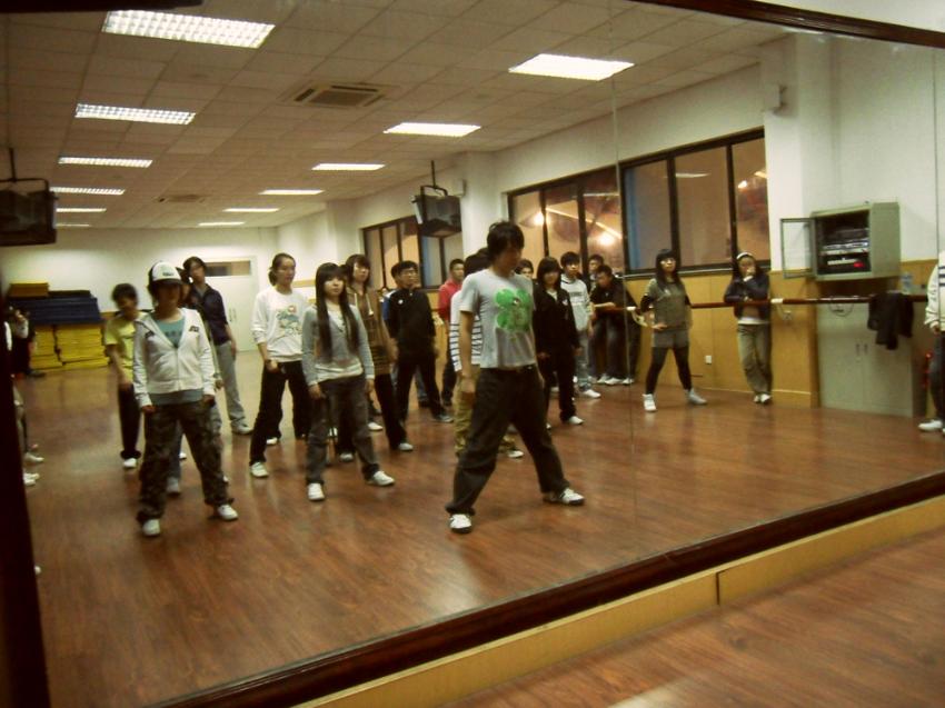 11月4日18:00,由街舞社社长张鹏盛企划开展的街舞社公开课在同学们高昂的热情下拉开了序幕,青春的涌动、自我的突显,同学们的热情充满着整个形体房。 此次公开课吸引了50多位街舞爱好者前来参加,公开课由特邀嘉宾Akimi(林益民)“教官”进行街舞基础的教学。“教官”擅长Hip-Hop Jazz,曾在02年东方新人获得最佳动作新人奖与八月观众最爱奖,08年华人群星新春大联合(罗志祥、陈奕迅、张惠妹)指定舞伴。有着如此丰富经验的“教官”深受同学们的喜欢。 在同学们的期待中,课程正式开始了,在 Akimi“教官”做了一番简短的自我介绍后,开始了公开课的第一个环节----那就是热身运动,同学们纷纷跟着“教官”做起了活力四射的“新版广播体操”,在经过10分钟的热身阶段后迎来了本次公开课的重头戏,那就是Hip-hop和Jazz舞种的基本动作教学,看着“教官”收放自如的舞蹈同学们也跟着学起来了,虽然一开始有许多同学动作都很僵硬,但是他们依然努力去尝试、模仿、琢磨并尽力做好每个动作。看着同学们如此专注投入的态度,“教官”倍感欣慰。在一段非常激烈的hip-hop后迎来的是Jazz风格,优美柔和的舞蹈在这充满活力的地方滑动着,同学们无不陶醉在如此优雅的舞境中。 直至晚上20:00,公开课进入了尾声,同学们依依不舍的离开了形体房,总体来说虽然本次公开课由于期中考试没有很多的同学参与,但是来学习的同学都非常投入,最终,这场公开课在一支活力四射的舞蹈中划下了完美的句号。