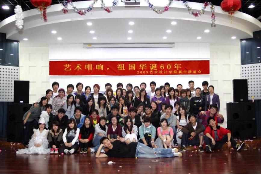 同学们精湛的才艺表演使整场联谊活动众彩纷呈,高潮迭起。联谊会在新疆同学献上的《黑走马》的优美舞蹈中拉开帷幕。其间穿插的师生互动小游戏掀起了整场晚会的第一个高潮。紧接着上演的节目更是为在场的同学们献上了一场视听盛宴。听!08和09级的同学联袂带来的高亢嘹亮、充满激情的歌曲;看!07级学长友情出演的吉他伴奏以及小品《面试》使同学们笑声中夹杂着感动,诗朗诵《我和我的祖国》更将整场晚会的气氛推向最高点。最后,整场晚会在大合唱《歌舞青春》中圆满地落下了帷幕。 这场属于艺术设计学院的联谊晚会给每个大一新生一个充分展示自我,彼此沟通的舞台,也让他们在今后的大学生活中能够更好的发挥特长、展示自我,为自己的青春年华谱写华美篇章。