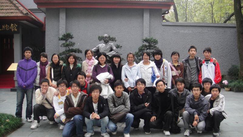 踏着历史的足迹,同学们又先后来到了孙中山纪念馆和周公馆,在这因为历史的重负而变得凝重和肃穆的展馆内,每一位同学都放慢了脚步,饱含着崇敬之情,用心细细品味着每一件展品中铭刻着的艰辛。 0313091班全体学生在孙中山纪念馆集体合影留念