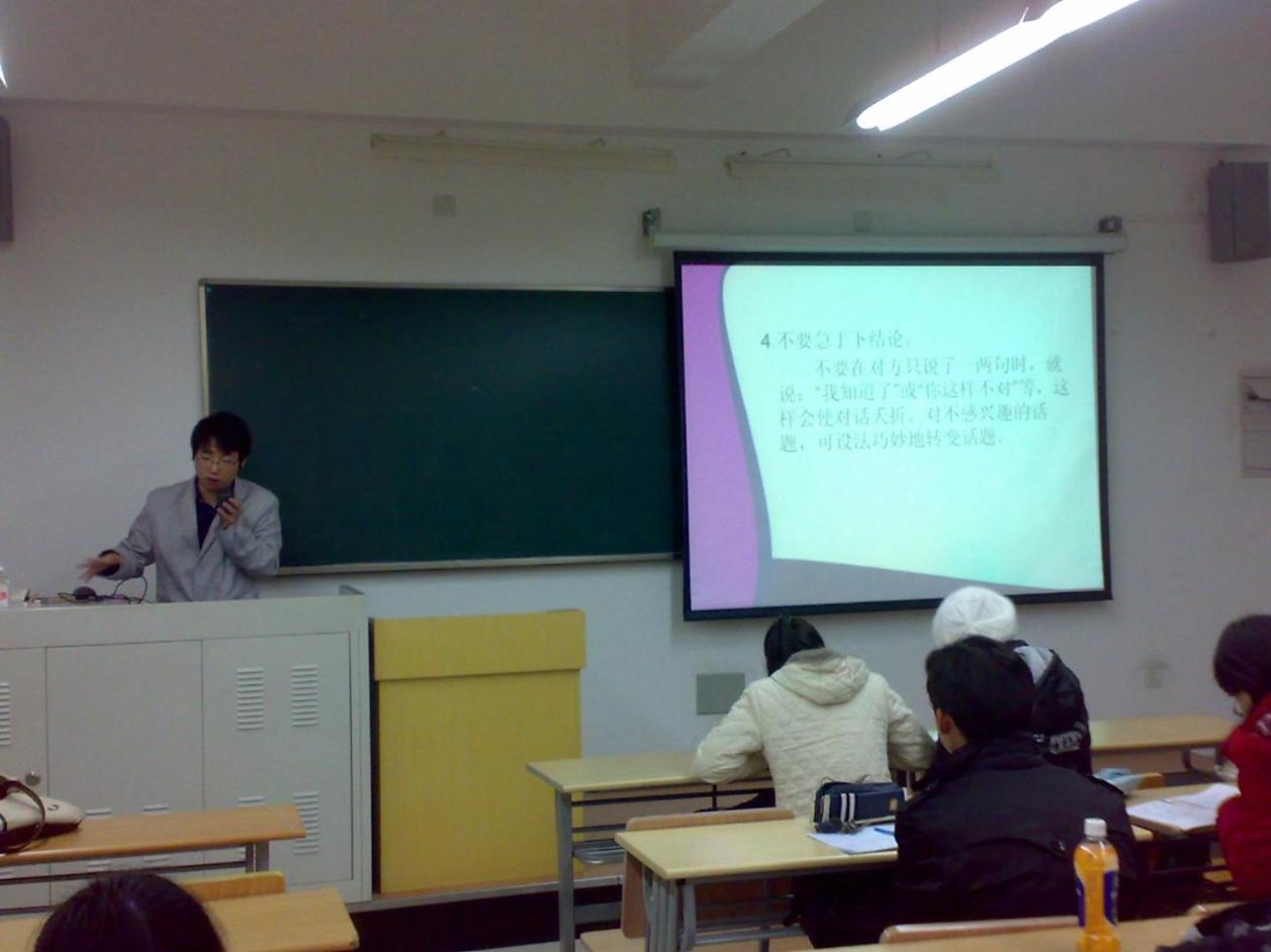 首先,提高倾听能力的技巧是至关重要的。在与他人交流时,你是否会与对方交流目光?对话中相对而视的时间应当占90%的时间,这样的交流才是轻松愉悦的。同时在交谈过程中,要保持轻松自如的神态,通过简短的插话和提问,表达对对方的兴趣。其次,吸引对方听你说话的技巧也相当地重要。众所周知,听众倾向于说话风格更与众不同的人。对演说的人而言,找到一个引人注目的演讲台似乎是他更为看重的,没有谁会站在听众背后演讲。当然,你也可以将自己打扮的漂亮一点,提高说话的声音,再穿插一些刺激性的小话题以激发听众兴趣。 那么,又如何与陌生人交谈呢?与刚认识的人交谈或谈起你不认识的人,最好的方式是从一个话题转移到另一个话题,直到某个话题达到双方兴趣的交集。“怎么”,“为什么”,“什么”是你的三个好朋友。此外,纳德·佐宁博士在《交际》一书中提到,在交谈前的四分钟是非常重要的。 通过此次培训活动,同学们掌握了人与人之间更娴熟的交流技巧,这为将来的成功打下很好的基础。如果你还在为自己的不擅健谈而苦恼,那么从现在开始,抓住每一个交谈的机会,大胆地将你的想法,你的见解与他人分享。让语言的力量衬托出你的个人魅力! | |