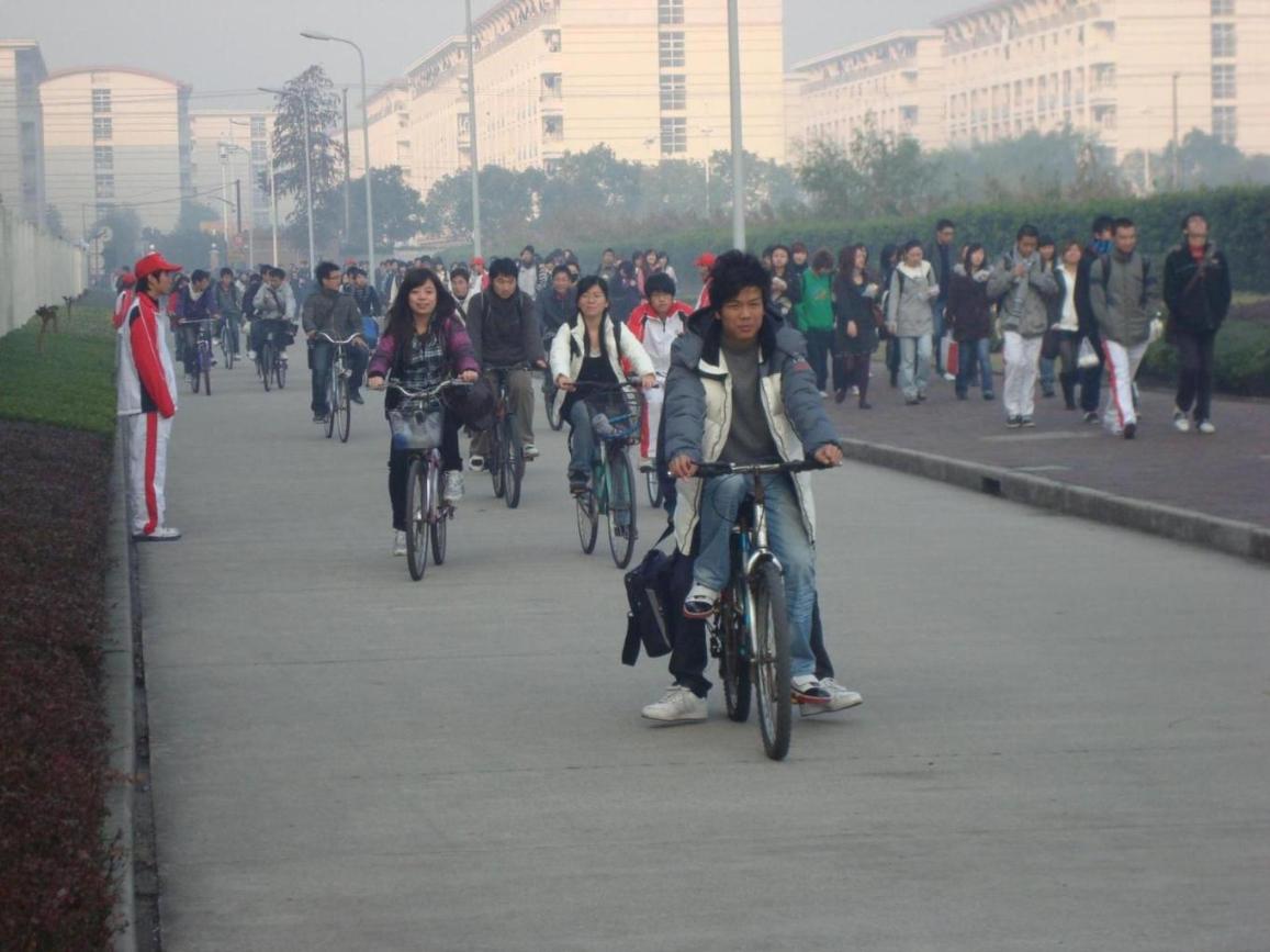 此次活动的目的是在上课前人流高峰时段,对同学们进行“人车分流”,即劝使步行的同学走马路边的人行道上,使其与骑车的同学分开,以确保行路安全。戴上红帽的志愿者们按照安排站上各自的岗位上,当看到有同学行走在自行车道上时,志愿者们便立刻上前委婉地提醒。同学们欣然接受了建议,纷纷走上人行道。于是,路上的行车秩序变得井然有序,达到了“人车分流”的效果,安全隐患大大减少了。