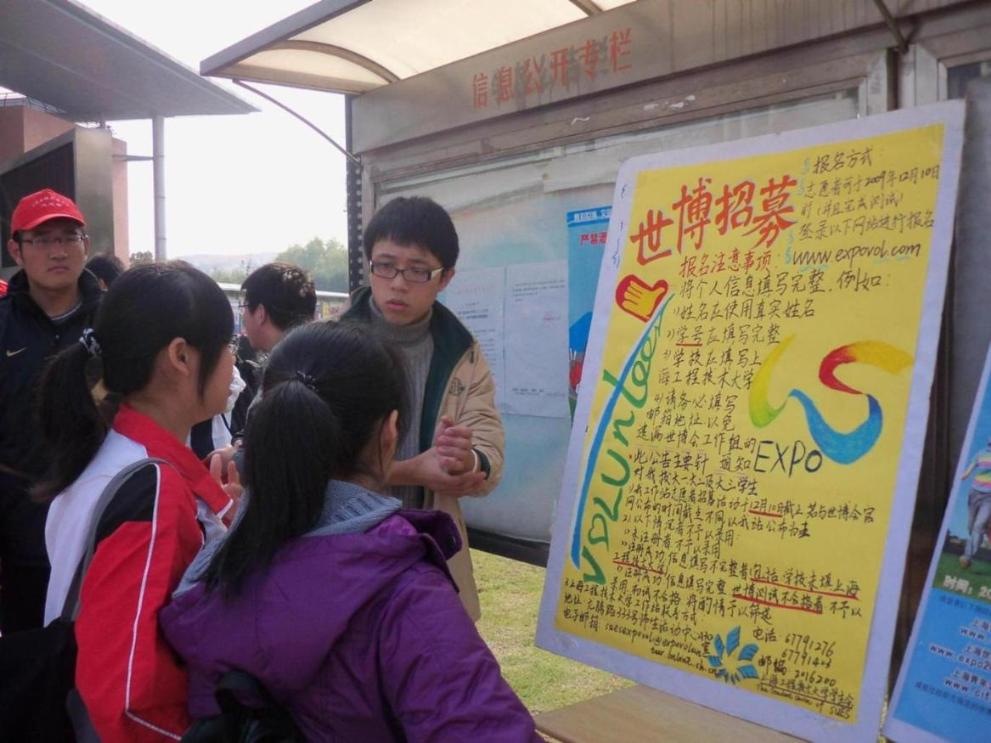 活动刚开始,就有不少同学将本来就不宽敞的宣传台挤得水泄不通。很多同学来咨询报名事宜,索要宣传资料的同学更是络绎不绝。从现场的火热程度不难看出大家争做志愿者想为上海的形象建设“添砖加瓦”的热情。 据悉,此次“中国2010年上海世博会志愿者”是由中国2010年上海世博会志愿者工作组统一招募的,招募的志愿者主要是世博会城市志愿服务站的志愿者。有兴趣的同学可以通过上海世博会官方网站,上海世博会志愿者招募网等六大网站进行自主报名,招募时间到2009年12月31日截止。 正如世博会志愿者的口号:“世界在你眼前,我们在你身边。”一样,每个有心成为2010世博会志愿者的人,不仅把这次报名成为世博会一员看成是个人经历的一次锻炼、一次自我展示的机会,更是一个向全世界展现上海风采和中国魅力的舞台。 | |