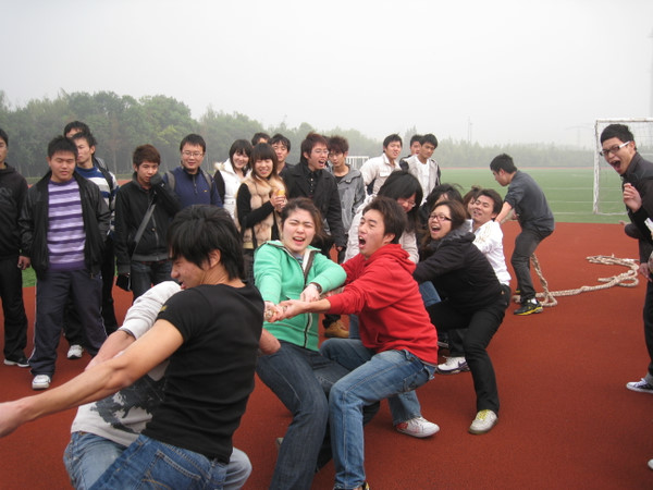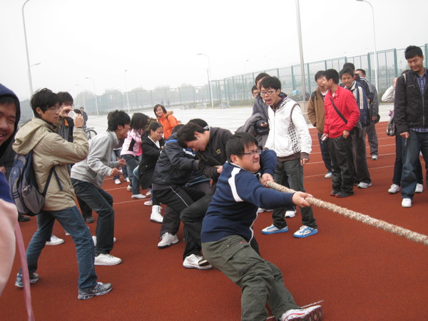 此次比赛共分6组,分别是031309班VS031108班、031B09班VS031109班、031207班VS031D09班、031609班VS031509班、031809班VS031A09班、031A07班VS031409班。各班同学都前来为班级加油打气,现场气氛十分热烈。比赛伊始,首先由031207班与031D09班这一组打头阵。哨声响起,加油声、叫喊声此起彼伏,双方都不肯示弱,拼尽全力将麻绳拉向己方。最终031D09班以2 :0取胜,同学们高声欢呼,仿佛想将这份喜悦传至在场的每一位同学。随后,由031B09班和031109班,031609班和031509班这两组进行下两场比赛,场面依旧是激情四射,031109班与031509班均以2 :0获胜。不管是参赛的还是观赛的同学都抱着一种集体荣誉感和对体育的热情参与其中。在同学们的配合下,比赛很快结束了,八强也随之产生,它们分别是031809班,031109班,031509班,031408班,031D09班,031409班,031309班,031608班。 运动场上,同学们挥洒着青春的汗水,传达着对体育的热忱与喜爱,期待着下次更为精彩的拔河赛。