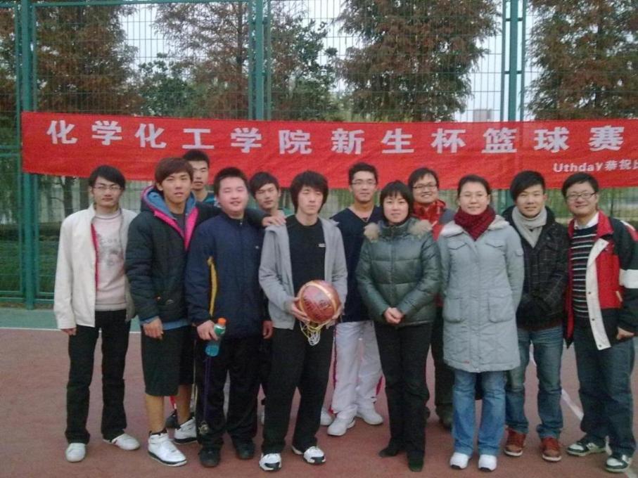 随着裁判员的一声哨响,比赛开始了。一开场,高分子1班就表现出了强大的实力,一直保持着领先的优势,但环境2班的队员并未因此而慌张,他们一边调整战术,一边加强防守,逐渐队员们找回了以往的状态,通过几次有成效的进攻,分数很快被拉近到只差三分,此时比赛也进入到了高潮阶段。双方拉拉队在场下的比拼也异常激烈。欢呼声,呐喊声响彻整个赛场。一旁观赛的老师们,也忍不住为精彩的比赛拍手叫好。通过积极的拼抢,士气高涨的环境2班终于在上半场结束前反超了比分。下半场一开始环境2班就控制了场上局势,很快就将比分拉大,最终以40比25毫无争议地赢得了比赛,拿到了此次新生篮球赛的冠军。 赛后,茅红柳老师亲自为冠军球队颁奖。在祝贺球队拿到冠军的同时,茅老师也对其他比赛队伍展现出的顽强拼搏的精神进行了高度的赞扬。最后,冠军队伍与前来观赛的几位老师合影纪念。 此次化学化工学院新生杯篮球赛从开赛到落幕,组织得当,秩序井然,大一年级辅导员熊伟老师和各班班主任每场比赛都到现场加油。 回忆起这些天来的点点滴滴,场上队员们拼搏的汗水,场边啦啦队声嘶力竭的呐喊助威,都让人记忆深刻。这次比赛将化工学院凝成一股绳,让大家学会了团结,也让“共聚”精神又一次得到传承。